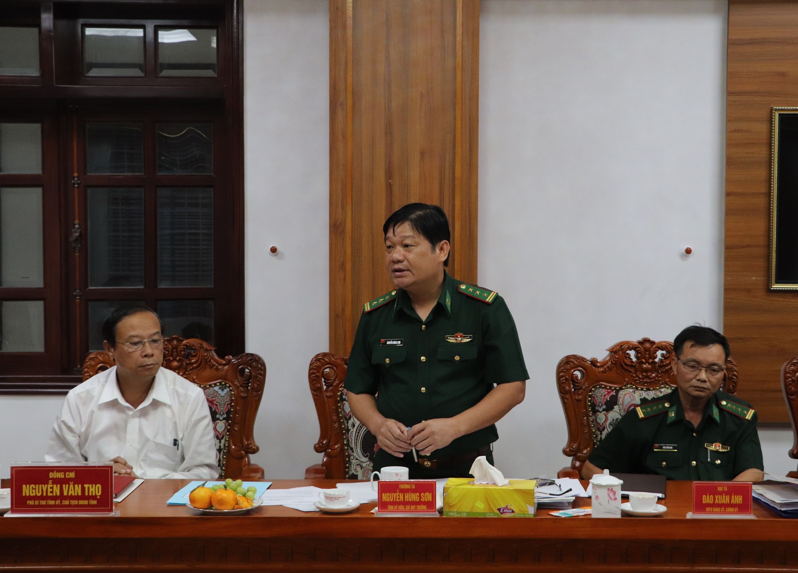 | Thượng tá Nguyễn Hùng Sơn, Phó Bí thư Đảng ủy, Chỉ huy trưởng Bộ Chỉ huy BĐBP tỉnh tiếp thu ý kiến của đại biểu tại buổi làm việc. |