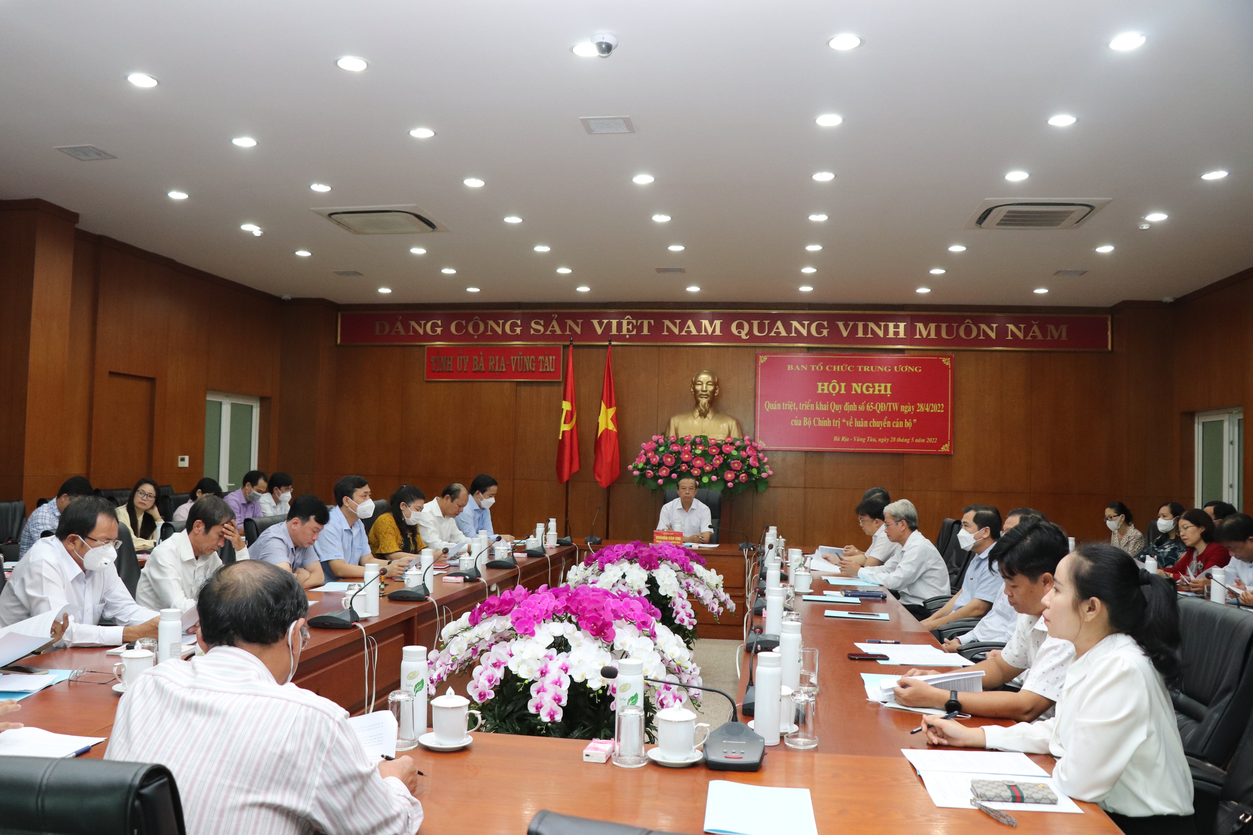 Hội nghị được tổ chức theo hình thức trực tuyến đến các điểm cầu cấp tỉnh, huyện, xã, do bà Trương Thị Mai, Ủy viên Bộ Chính trị, Bí thư Trung ương Đảng, Trưởng Ban Tổ chức Trung ương và ông Mai Văn Chính, Ủy viên Trung ương Đảng, Phó Trưởng Ban Thường trực Ban Tổ chức Trung ương chủ trì.