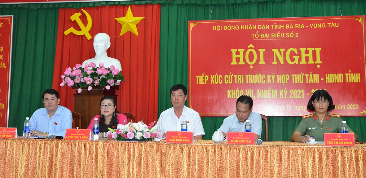 Tiếp xúc với đại biểu HĐND tỉnh, cử tri phản ánh, kiến nghị các vấn đề như: Lãnh đạo tỉnh quan tâm thúc đẩy giải ngân vốn đầu tư công, vì trong 5 tháng đầu năm mới chỉ giải ngân được 15,4% kế hoạch; ngành du lịch phát triển còn chậm chưa tương xứng tiềm năng mà thiên nhiên đã ban tặng cho tỉnh; có chính sách kìm chế đà tăng của giá xăng dầu và hỗ trợ ngư dân huyện Long Điền vươn khơi bám biển; có biện pháp mạnh để xử lý các xe tự chế bán hàng rong mở loa gây ô nhiễm tiếng ồn ở khu dân cư tại TP. Vũng Tàu; tình trạng đậu xe lấn chiếm vỉa hè, lòng đường tại các quán cà phê, trà sữa trên địa bàn TP. Bà Rịa.