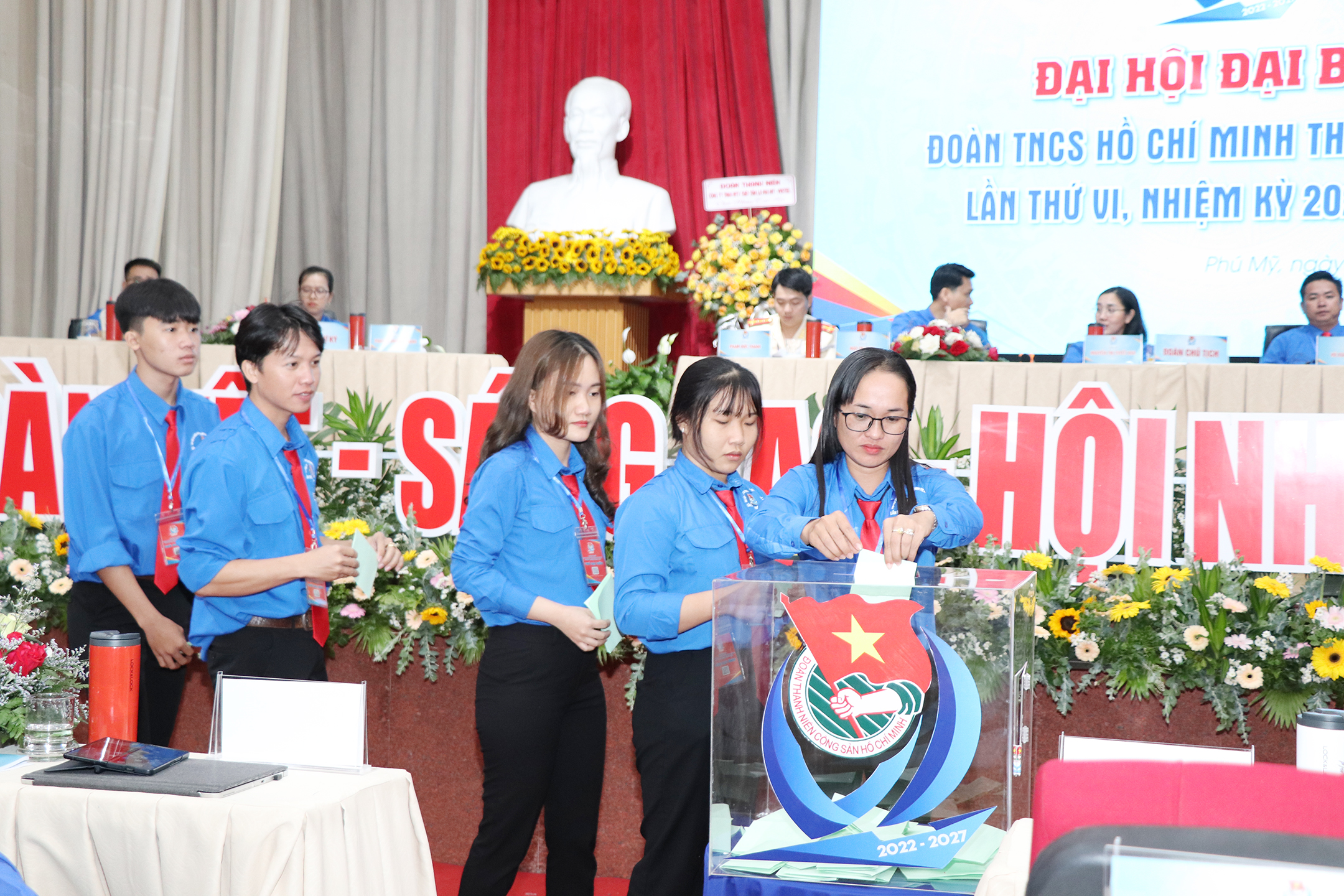 | Các đại biểu bỏ phiếu bầu cử Ban chấp hành Thị Đoàn Phú Mỹ khóa VI, nhiệm kỳ 2022-2027. |