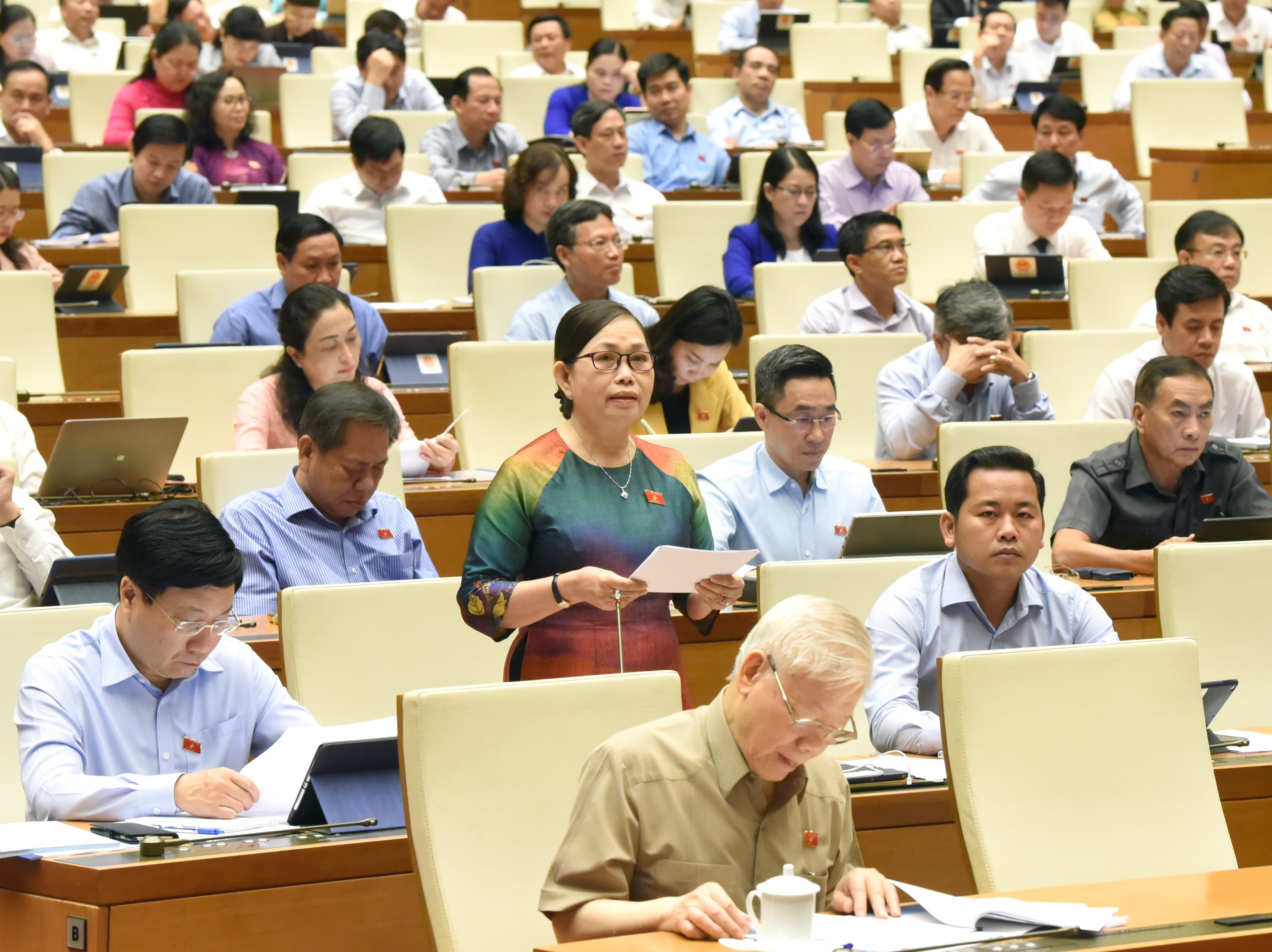 | Đại biểu Nguyễn Thị Yến, Phó Bí thư Thường trực Tỉnh ủy, Trưởng Đoàn ĐBQH tỉnh Bà Rịa-Vũng Tàu phát biểu thảo luận về kinh tế-xã hội, sáng 1/6. Ảnh: CHÂU VŨ |