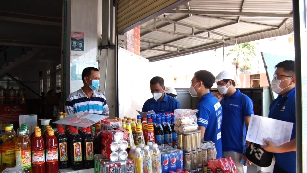 | Đoàn viên, thanh niên huyện Long Điền đến từng cửa hàng, cơ sở kinh doanh tại chợ Long Điền để tuyên truyền, vận động đăng ký, vận hành các điểm thanh toán không dùng tiền mặt |