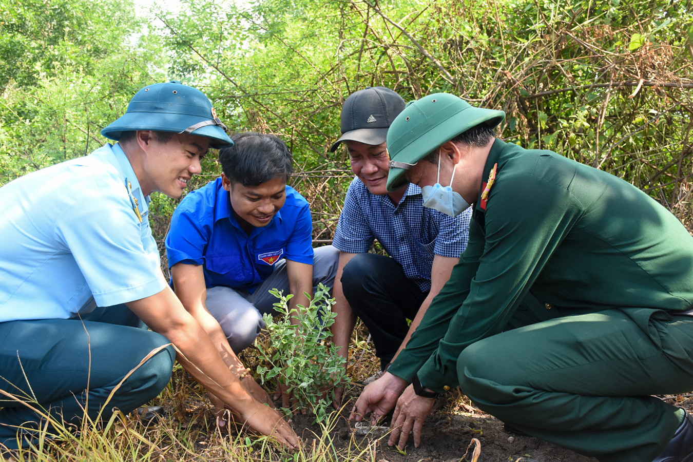 | Ông Nguyễn Hữu Lộc (thứ hai từ phải qua), Phó Chủ tịch UBND Huyện Xuyên Mộc cùng đoàn viên thanh niên lực lượng công an, quân sự huyện Xuyên Mộc tham gia trồng cây. |
