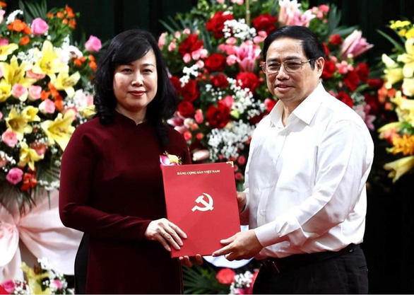| Thủ tướng Phạm Minh Chính trao quyết định cho Quyền Bộ trưởng Đào Hồng Lan. Ảnh: NGUYỄN KHÁNH |
