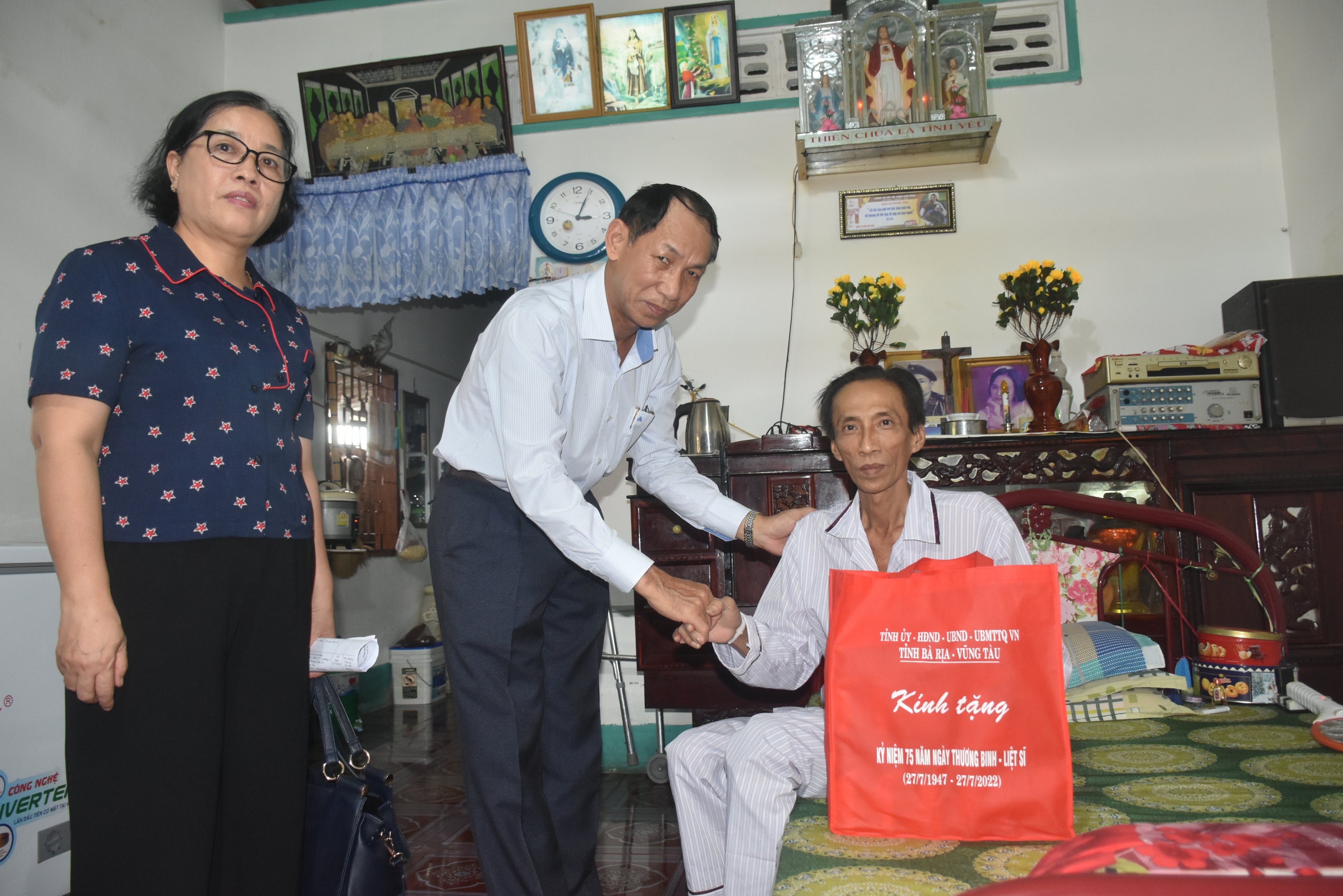 * Đoàn do ông Trần Văn Tuấn, Phó Chủ tịch UBND tỉnh làm Trưởng Đoàn đã đến thăm, tặng quà 2 Mẹ VNAH là Lại Thị Bạn và La Thị Biên (xã Nghĩa Thành); ông Vũ Minh Đệ (thương binh 2/4, xã Xuân Sơn) và ông Nguyễn Văn Cậy (thương binh 2/4, xã Xuân Sơn), huyện Châu Đức.
