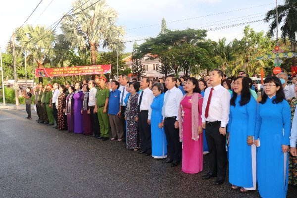 Trước khi viếng nghĩa trang, Đoàn đại biểu Thành ủy, HĐND, UBND, Ủy ban MTTQ Việt Nam TP. Hồ Chí Minh đã thực hiện nghi thức chào cờ tại cột cờ vòng xoay Tôn Đức Thắng - Lê Hồng Phong, huyện Côn Đảo.