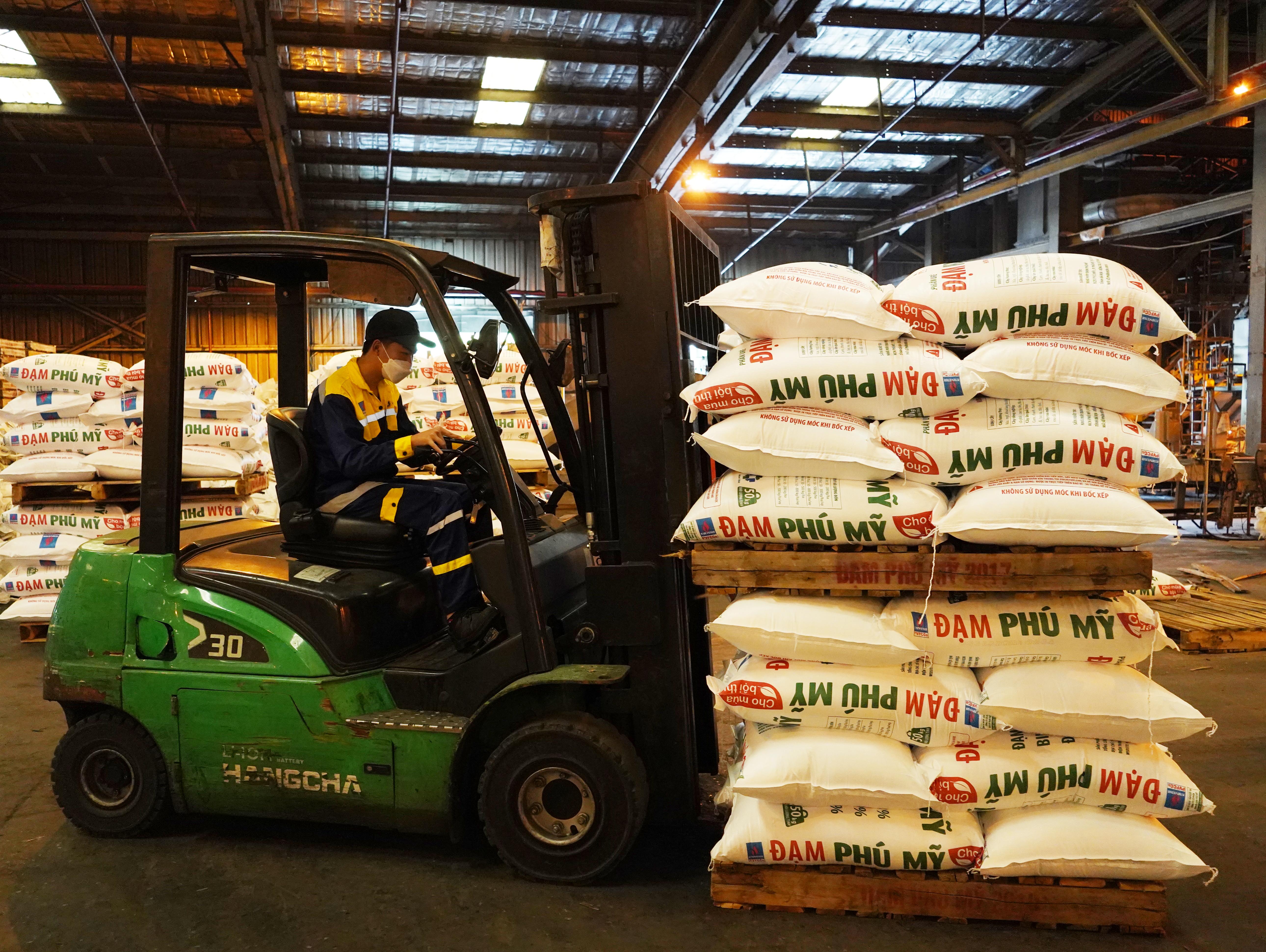 | Giá trị sản xuất công nghiệp (trừ dầu thô và khí đốt) trên địa bàn tỉnh đạt mức tăng trưởng cao hơn bình quân kế hoạch cả năm. Trong ảnh: Đưa hàng vào kho tại Nhà máy đạm Phú Mỹ. |