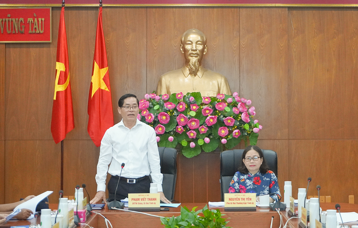 Ông Phạm Viết Thanh, Uỷ viên Trung ương Đảng, Bí thư Tỉnh uỷ; bà Nguyễn Thị Yến, Phó Bí thư Thường trực Tỉnh uỷ, Trưởng Đoàn ĐBQH tỉnh chủ trì cuộc họp.