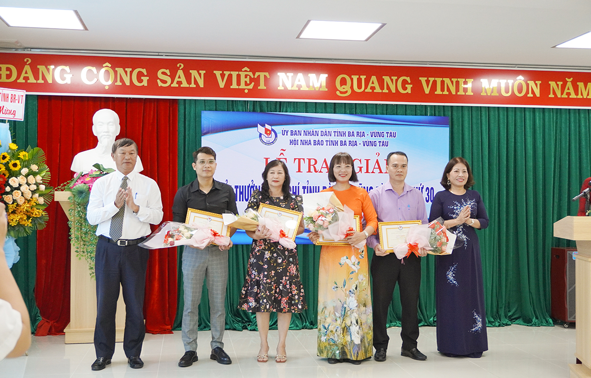 Các tác phẩm đạt Giải Báo chí tỉnh năm 2021-2022 3 tác phẩm đạt giải A: Loạt 8 phóng sự ảnh Những ngày nóng bỏng của đại dịch COVID-19 của nhóm tác giả Hoàng Hoài Nam và Tổ phóng viên phòng, chống dịch CCOVID-19 (Báo Bà Rịa - Vũng Tàu); Nghị quyết 5 và hy vọng của ngư dân của nhóm tác giả Quách Thị Hằng và Nguyễn Văn Dùng (Đài PT-TH tỉnh); Bất cập trong công tác quản lý các mỏ khoáng sản của nhóm tác giả Nguyễn Thị Hải Yến và Trần Thiết Hiếu Thuận (Đài PT-TH tỉnh). 3 tác phẩm đạt giải B gồm: Bản lĩnh người đứng đầu trong cuộc chiến chống dịch COVID-19 của nhóm tác giả Trương Đức Doanh, Nguyễn Văn Hồng và Nguyễn Thanh Tân (Đài PT-TH tỉnh); TP. Vũng Tàu quyết liệt xử lý các công trình xây dựng trái phép của tác giả Nguyễn Văn Anh (Báo Bà Rịa - Vũng Tàu); Chinh phục những thiên đường làm việc hấp dẫn nhất hành tinh của tác giả Lục Thị Khánh Chi (Báo Bà Rịa - Vũng Tàu). 3 tác phẩm đạt giải C gồm: Tết Vạn dặm xa của tác giả Nguyễn Quốc Thái (Đài PT-TH tỉnh); DK1-Những cột mốc chủ quyền trên biển của tác giả Đoàn Minh Nhân (Báo Bà Rịa - Vũng Tàu); Vai trò của Đảng được phát huy tối đa trong cuộc chiến chống dịch COVID-19 của tác giả Nguyễn Thị Minh Thiên (Báo Bà Rịa - Vũng Tàu). 10 giải Khuyến khích gồm: Xây dựng chính quyền hiện đại, năng động, vì dân phục vụ của tác giả Phạm Thị Minh Tâm (Báo Bà Rịa - Vũng Tàu); Quản lý chặt các cơ sở bảo trợ trẻ em ngoài công lập của tác giả Nguyễn Thị Cẩm Nhung (Báo Bà Rịa - Vũng Tàu); Phát triển chợ truyền thống trong xu thế mới của tác giả Dương Thị Vân Anh (Báo Bà Rịa - Vũng Tàu); Phát triển ngành du lịch xứng tầm trụ cột kinh tế của tác giả Trần Thị Mỹ Lương (Báo Bà Rịa - Vũng Tàu); Chỉnh trang bãi biển Hồ Tràm - Yêu cầu cấp bách của nhóm tác giả Nguyễn Thành Huy, Nguyễn Thị Trúc Giang (Báo Bà Rịa - Vũng Tàu); Giúp dân không phải để “làm màu” của nhóm tác giả Lê Thị Hồng Phúc, Trần Thị Thanh Xuân, Phan Thanh Bình, Hồ Minh Hải (Đài PT-TH tỉnh); Vượt lên những thử thách mang tên COVID-19 của nhóm tác giả Huỳnh Thị Xuân Thủy, Trần Bảo Long, Nguyễn Thanh Tân (Đài PT-TH tỉnh); Điểm tựa của nhóm tác giả Trần Thị Thanh Xuân, Hồ Minh Hải, Phạm Đức Thuận, Nguyễn Thái Sơn (Đài PT-TH tỉnh); Hai năm thực hiện đề án đưa công an chính quy về xã: Điểm tựa tin cậy của Nhân dân của nhóm tác giả Trần Chí Thiện, Nguyễn Thị Thuý Lan (Đài PT-TH tỉnh); Lay lắt chợ truyền thống của nhóm tác giả Đinh Thị Huỳnh Giao, Nguyễn Công Bình (Đài PT-TH tỉnh). |
