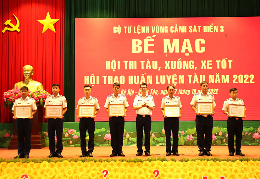 Sáng 17/10, Bộ Tư lệnh Vùng Cảnh sát biển (CSB) 3 tổ chức Lễ bế mạc và trao giải Hội thi tàu, xuồng, xe tốt - Hội thao huấn luyện tàu năm 2022.