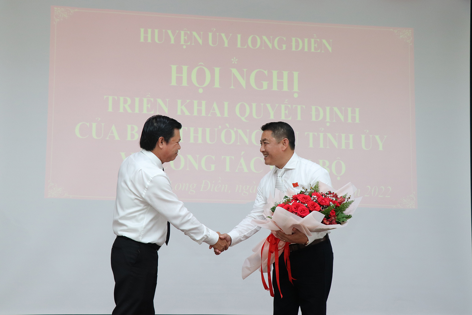 Tại hội nghị, ông Lê Hữu Hiền, Chánh Văn phòng Huyện ủy Long Điền đã thông báo Quyết định số 709-QĐ/TU của Ban Thường vụ Tỉnh ủy về việc luân chuyển ông Huỳnh Sơn Tuấn, Tỉnh ủy viên, Chủ tịch LĐLĐ tỉnh đến nhận công tác tại Huyện ủy Long Điền và chỉ định tham gia Ban Chấp hành, Ban Thường vụ, giữ chức vụ Bí thư Huyện ủy Long Điền, nhiệm kỳ 2020-2025, kể từ ngày 7/9/2022.