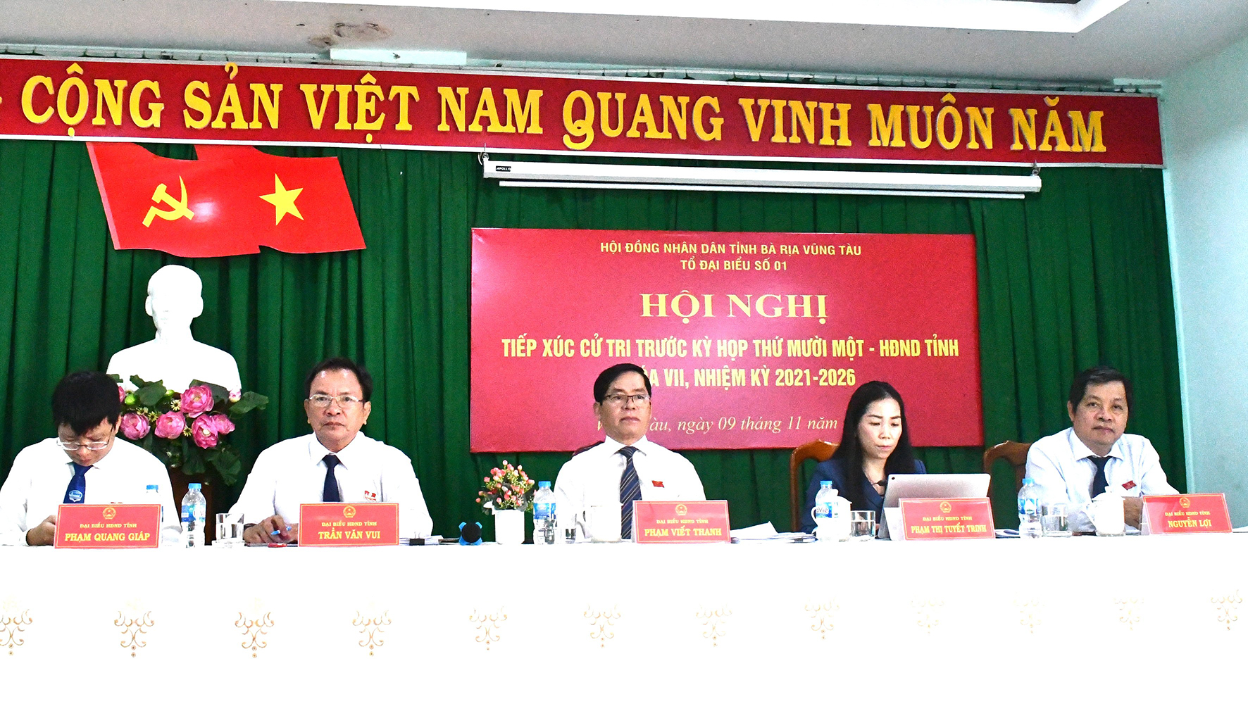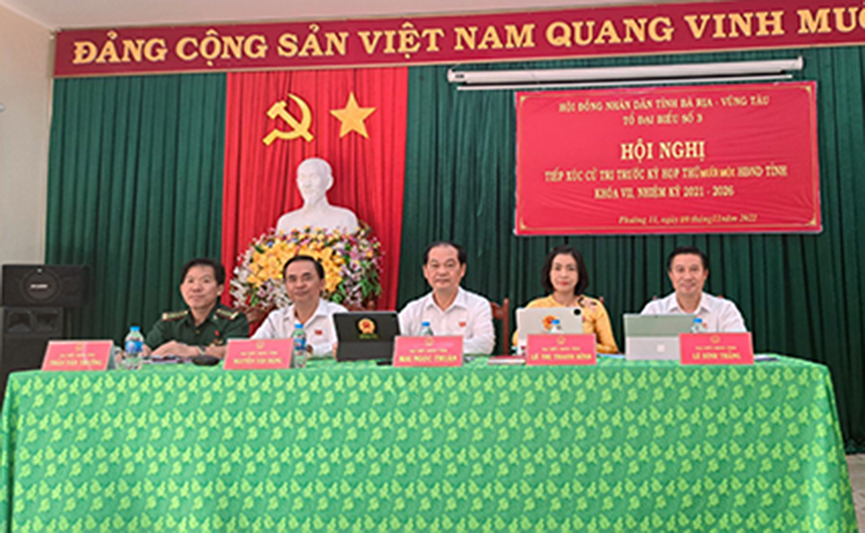 Tổ đại biểu số 3 HĐND tỉnh (ảnh dưới) gồm: Ông Mai Ngọc Thuận, Ủy viên Ban Thường vụ Tỉnh ủy, Phó Chủ tịch Thường trực HĐND tỉnh; bà Lê Thị Thanh Bình, Phó Bí thư Thường trực Thành ủy, Chủ tịch HĐND TP. Vũng Tàu; ông Nguyễn Văn Đặng, Trưởng Ban Kinh tế - Ngân sách HĐND tỉnh; ông Trần Văn Trường, Phó Chỉ huy trưởng Bộ Chỉ huy Bộ đội Biên phòng tỉnh đã TXCT phường 11 (TP. Vũng Tàu).
