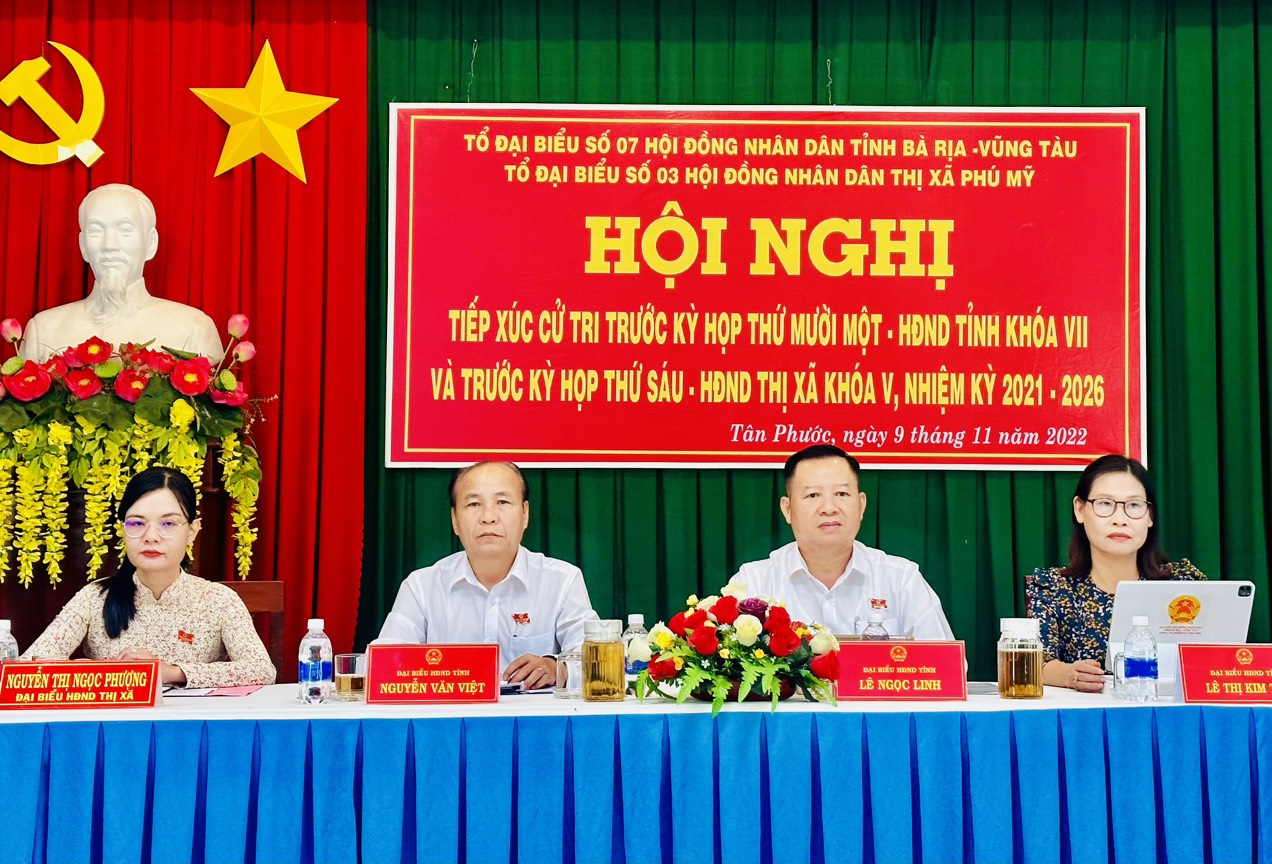 Tiếp xúc với đại biểu HĐND tỉnh, các cử tri phản ánh, kiến nghị nhiều vấn đề như: Tăng cường kiểm tra an toàn thực phẩm tại các chợ; tình trạng xe quá tải, rơi vãi đất đá và học sinh đi xe phân khối lớn đến trường gây nguy cơ mất an toàn giao thông tại TP. Vũng Tàu; chính sách hỗ trợ người lao động mua nhà ở xã hội; giá vật tư nông nghiệp tăng cao trong khi giá mua sản phẩm thấp gây khó khăn cho bà con nông dân; tình trạng bong bóng bất động sản, phân lô tách thửa trái phép trên đất nông nghiệp; các xe vận tải lưu thông trên đường Cảng nội địa làm rơi vãi vật liệu gây nên tình trạng ô nhiễm bụi, các dự án quy hoạch trên địa bàn TX. Phú Mỹ kéo dài nhiều năm không thực hiện, đường giao thông nhỏ hẹp và xuống cấp; kiến nghị các bộ, ngành, chính quyền địa phương có giải pháp hỗ trợ ngư dân đánh bắt xa bờ, đẩy nhanh tiến độ thi công các tuyến đường và giải quyết tình trạng ngập lụt, ô nhiễm môi trường…