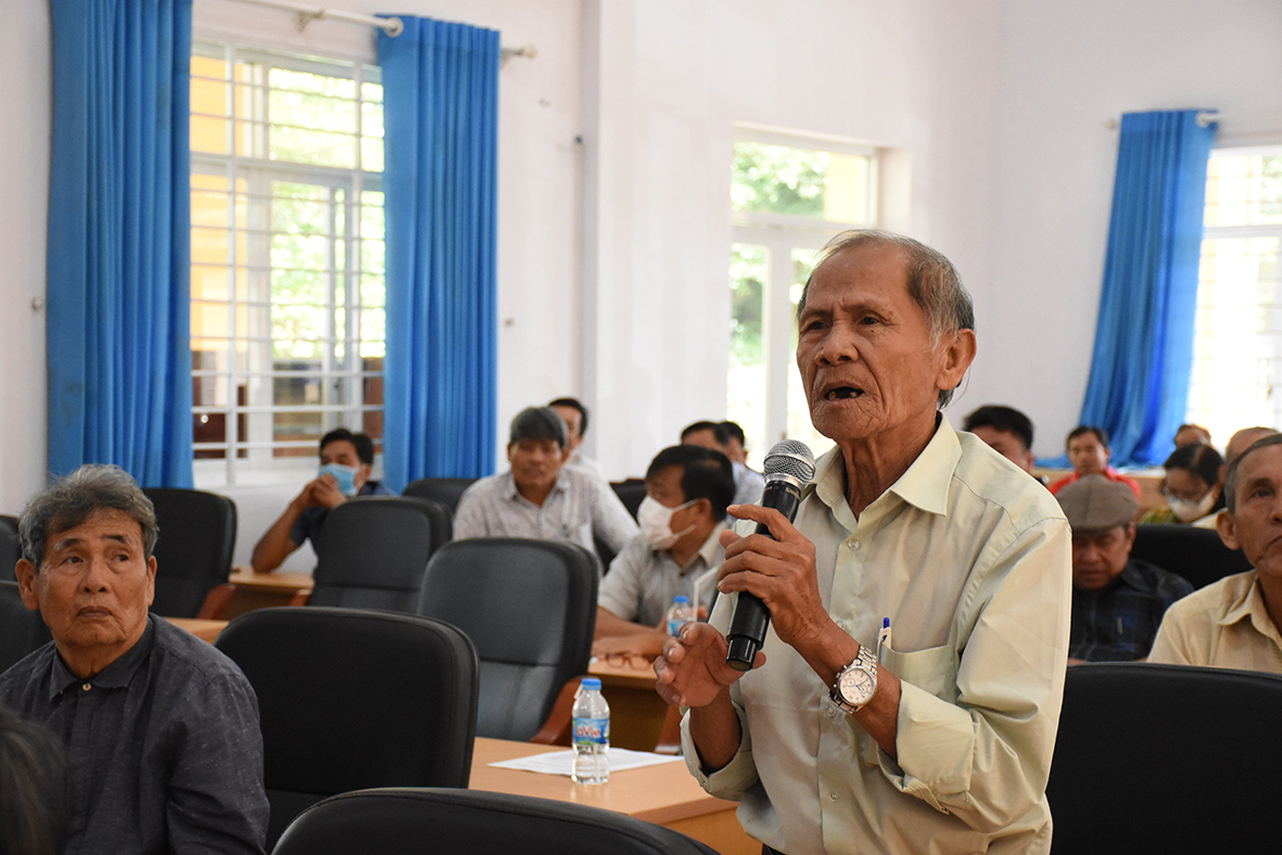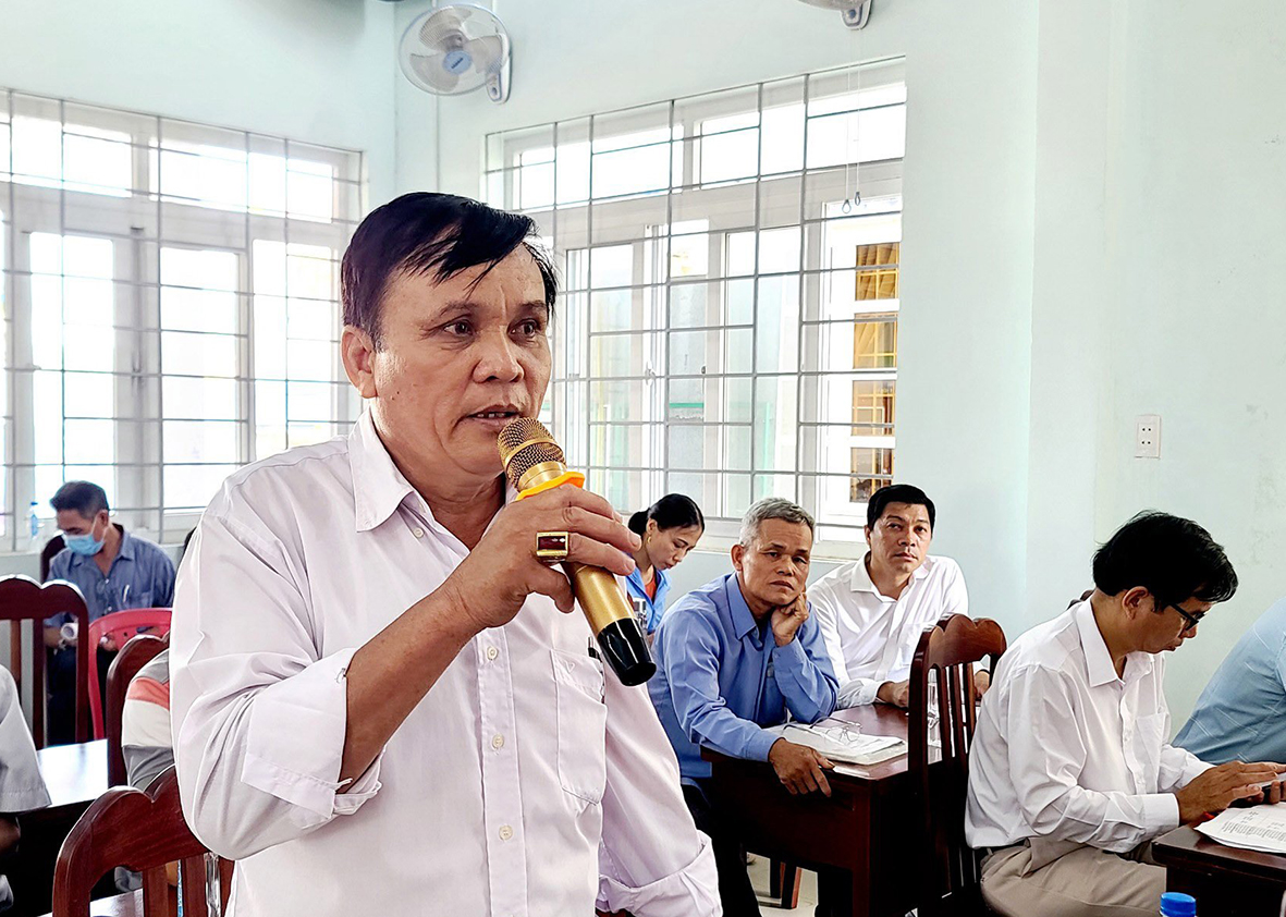 | Cử tri Phạm Đức Nhuận (xã Phước Hội, huyện Đất Đỏ) phản ánh giá vật tư nông nghiệp tăng cao trong khi giá mua sản phẩm thấp gây khó khăn cho bà con nông dân. Ảnh: VÂN ANH |