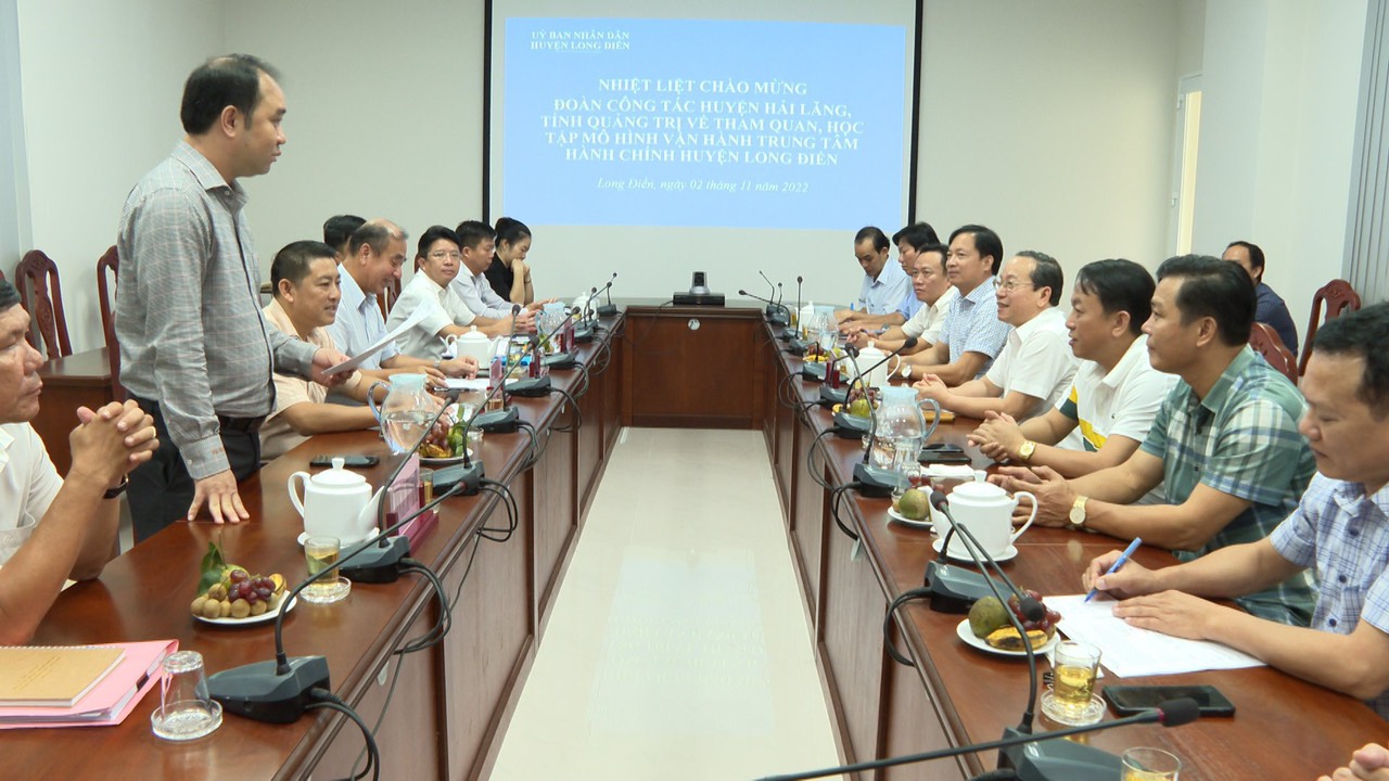Ngày 2/11, Đoàn công tác của Huyện ủy, HĐND, UBND, Ủy ban MTTQVN huyện Hải Lăng (tỉnh Quảng Trị) do ông Lê Thế Quảng, Bí thư Huyện ủy, Chủ tịch HĐND huyện làm Trưởng đoàn đã đến tham quan, học tập mô hình vận hành Trung tâm hành chính của huyện Long Điền.