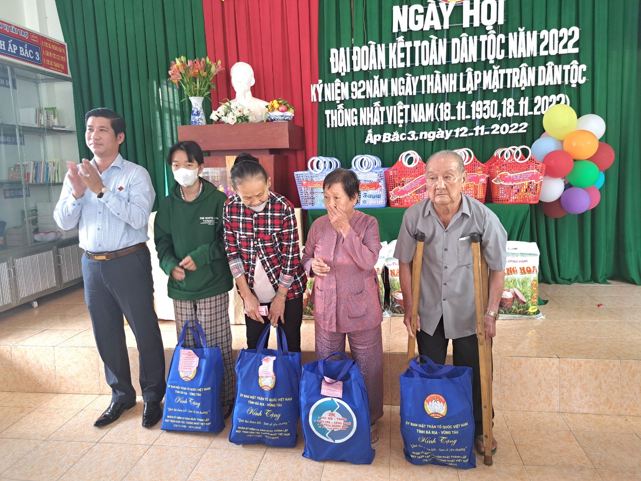 Dịp này, UBMTTQ Việt Nam tỉnh và TP. Bà Rịa trao 14 phần quà (500 ngàn đồng/phần) cho hộ nghèo, gia đình có hoàn cảnh khó khăn, người cao tuổi, người khuyết tật trên địa bàn ấp; UBND xã Long Phước trao 9 Giấy khen cho gia đình có thành tích xuất sắc trong thực hiện cuộc vận động “Toàn dân đoàn kết xây dựng nông thôn mới, đô thị văn minh” năm 2022.