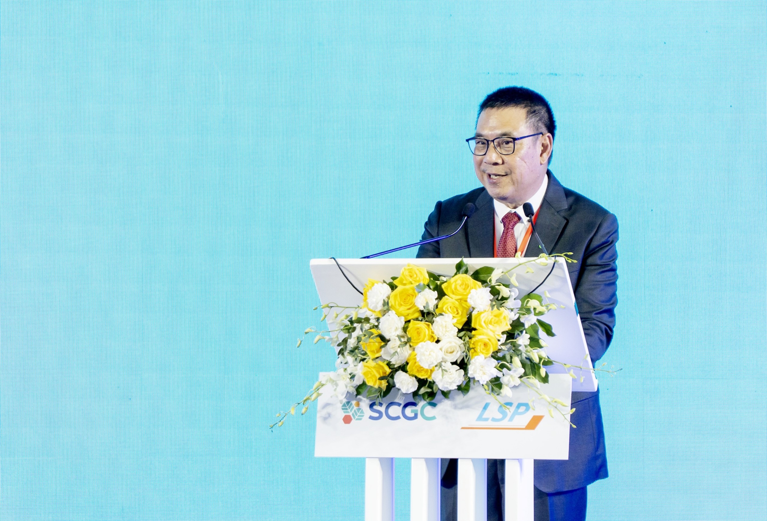 Phát biểu tại buổi lễ, ông Roongrote Rangsiyopash, Chủ tịch kiêm Giám đốc điều hành của tập đoàn SCG, công ty chủ quản của Công ty TNHH Hóa dầu Long Sơn (LSP) cho biết (ảnh dưới), Tổ hợp Hoá dầu Miền Nam là dự án trọng điểm của Tập đoàn SCG và SCG Chemicals (hay còn gọi là SCGC) tại Việt Nam, thể hiện cam kết lâu dài của tập đoàn đối với sự phát triển bền vững của quốc gia.