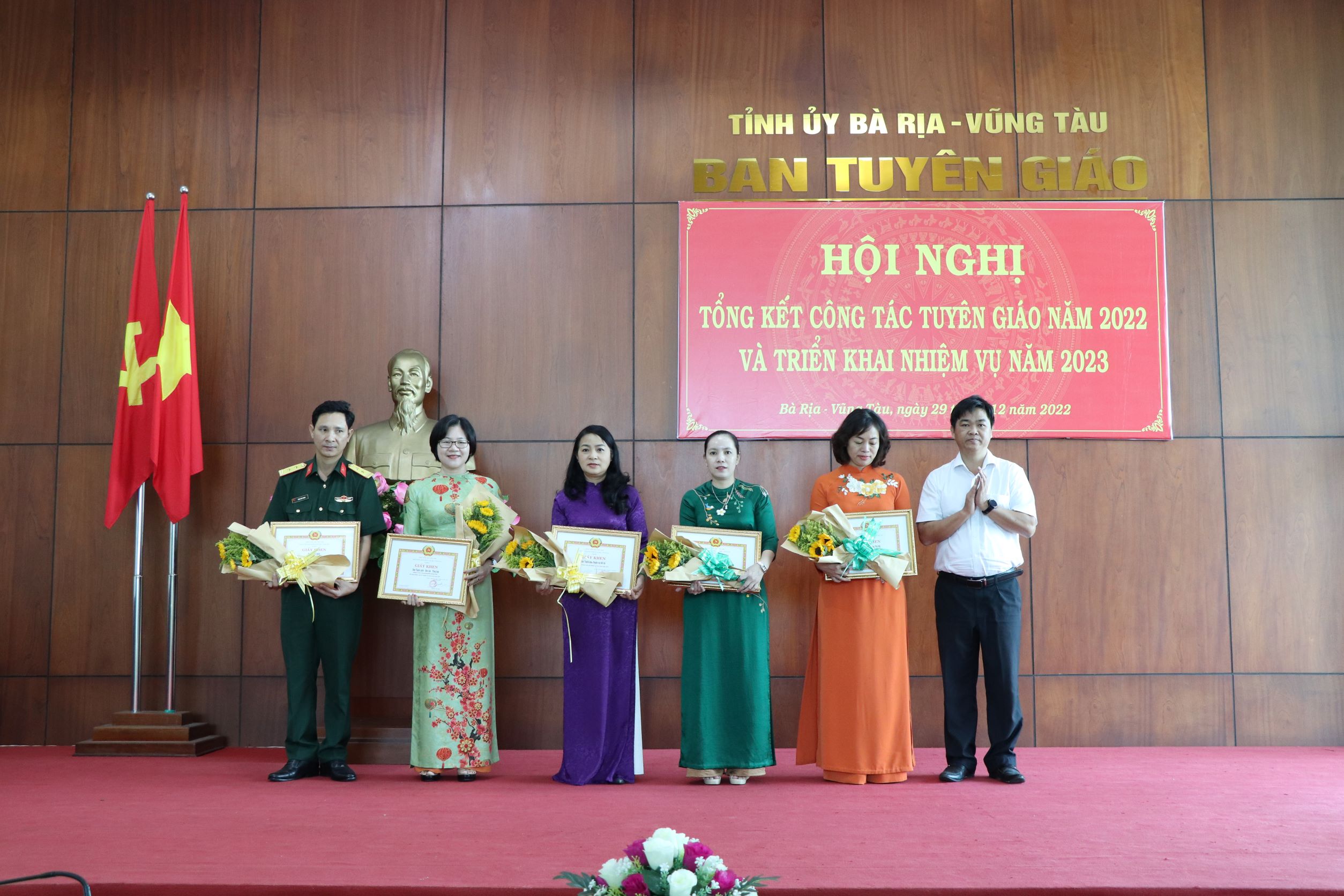 Dịp này, 5 tập thể, 10 cá nhân có thành tích xuất sắc trong công tác tuyên giáo năm 2022 được Ban Tuyên giáo Tỉnh ủy biểu dương, khen thưởng.