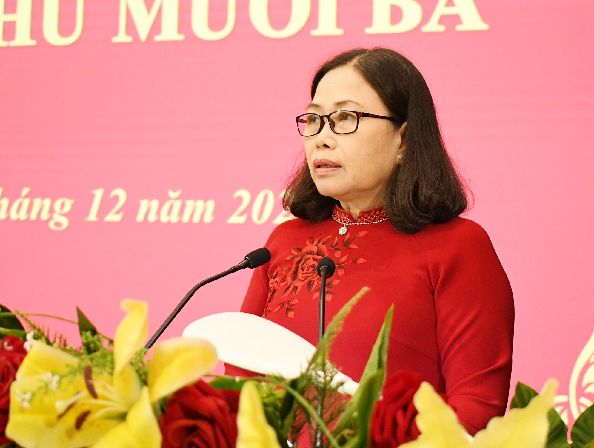 Trong chương trình Hội nghị Ban chấp hành Đảng bộ tỉnh lần thứ 13, bà Nguyễn Thị Yến, Phó Bí thư Thường trực Tỉnh ủy, Trưởng Đoàn ĐBQH tỉnh đã trình bày Báo cáo tóm tắt tình hình phát triển kinh tế - xã hội, quốc phòng - an ninh, công tác xây dựng Đảng năm 2022, nhiệm vụ trọng tâm năm 2023. (ảnh dưới)