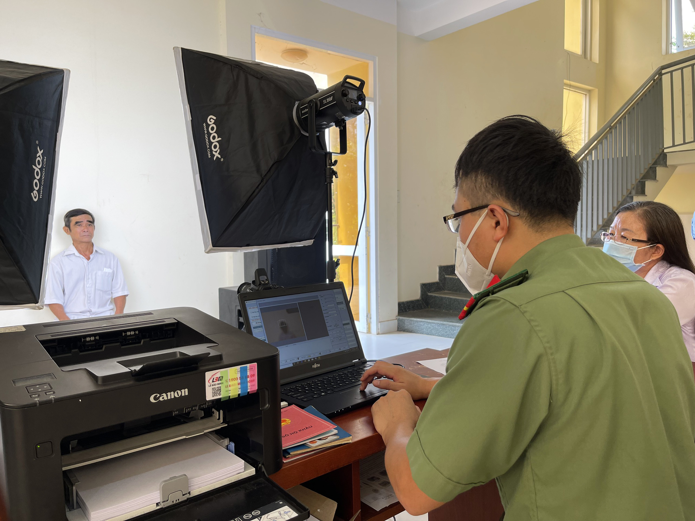 | Công an huyện Châu Đức làm thủ tục cấp CCCD gắn chíp cho người dân. |