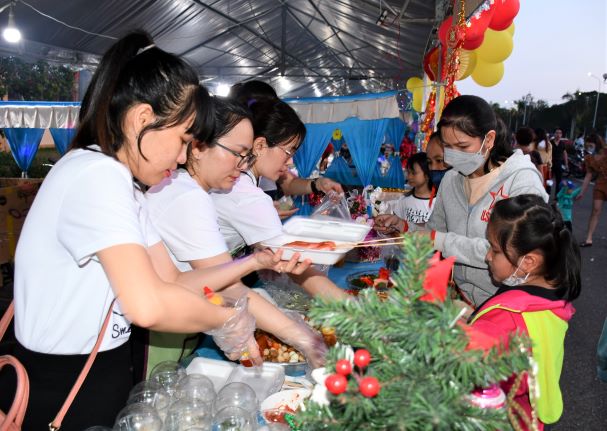 Trước đó, vào chiều cùng ngày, Công đoàn Công ty TNHH Sản xuất Giày Uy Việt tổ chức 26 gian hàng ẩm thực. Công đoàn đã phát phiếu đổi thực phẩm miễn phí cho tất cả cán bộ, nhân viên, người lao động khi tham gia chương trình ẩm thực.