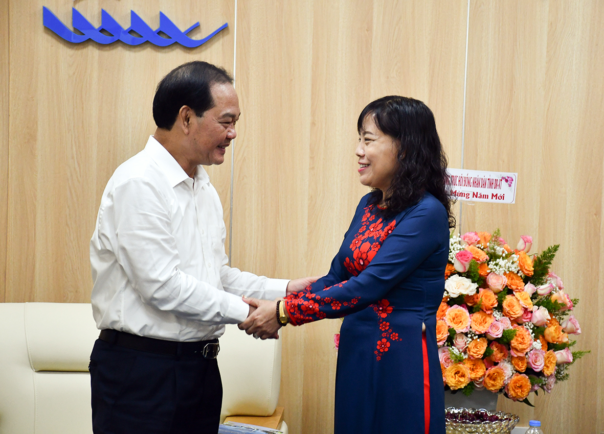 | Ông Mai Ngọc Thuận, Phó Chủ tịch HĐND tỉnh thăm hỏi, chúc Tết bà Đỗ Nguyễn Hoàng Dung, Quyền Tổng Biên tập Báo Bà Rịa-Vũng Tàu. |