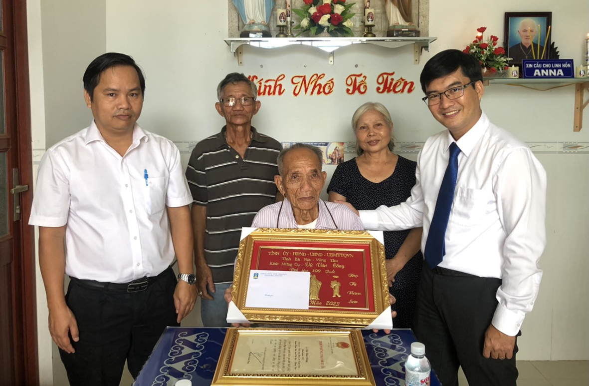 Đoàn do bà Võ Ngọc Thanh Trúc, Tỉnh ủy viên, Phó Trưởng Ban Tổ chức Tỉnh ủy làm Trưởng Đoàn đã đến thăm và chúc thọ các cụ 100 tuổi trên địa bàn TP.Bà Rịa, gồm, cụ Đỗ Lộc (phường Phước Hưng); cụ Nguyễn Kim No (phường Phước Trung); cụ Hoàng Thị Nhơn và cụ Vũ Thị Hoà (phường Phước Hiệp).