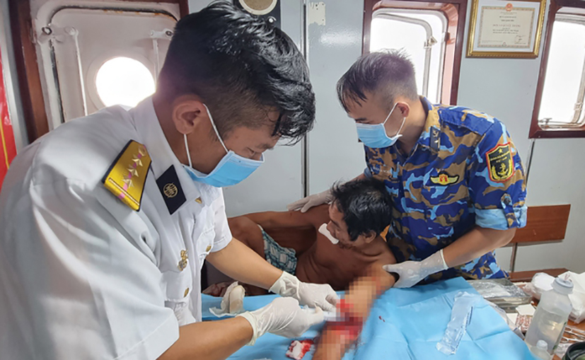 | Tổ Quân y Tàu 212 - Vùng 2 Hải quân cấp cứu cho ngư dân Nguyễn Văn Khôi, thuyền trưởng tàu cá BV 5237 TS. |