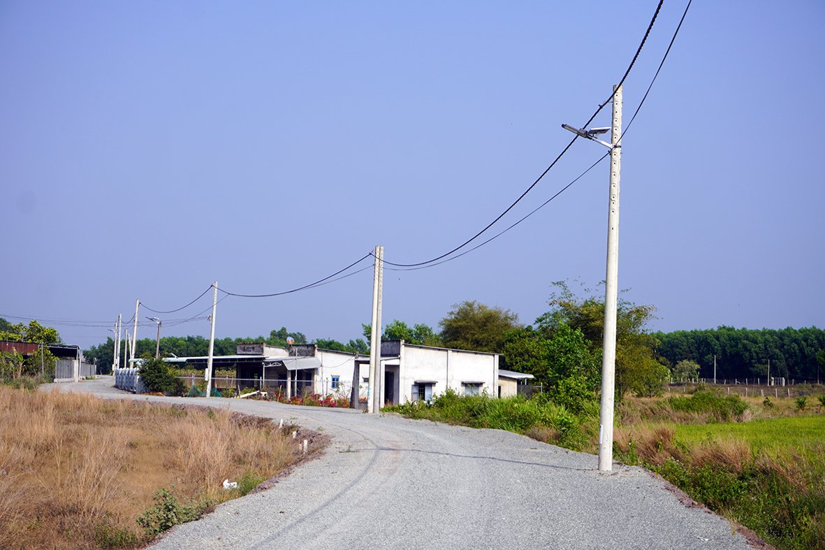 Công trình gồm 7 trụ đèn, bóng đèn năng lượng mặt trời, lắp đặt trên tổng chiều dài 700m của tuyến đường giao thông nông thôn thuộc ấp Phước Thới, xã Phước Long Thọ.