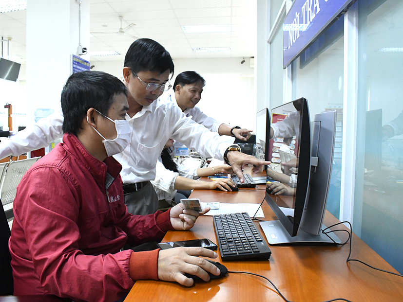 | Người dân được hướng dẫn thực hiện thủ tục trực tuyến tại Trung tâm Phục vụ Hành chính công của tỉnh. |