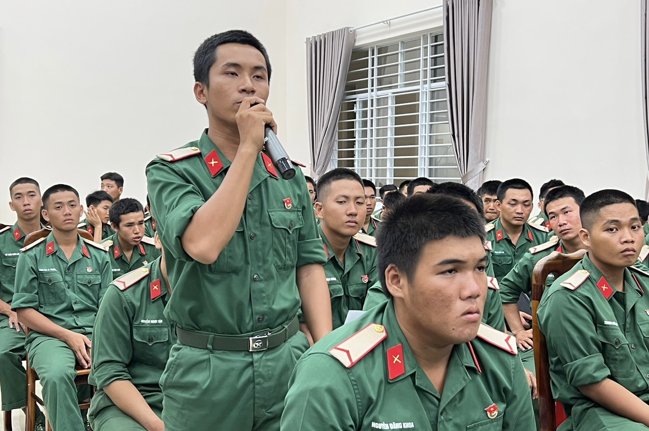 | Đại tá Phạm Văn Tuấn, Phó Chỉ huy trưởng Bộ CHQS tỉnh giải đáp thắc mắc của các cán bộ, chiến sĩ mới. |