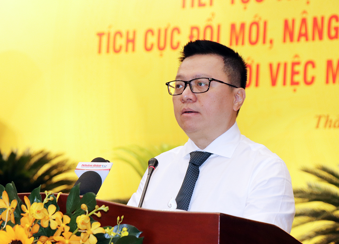 | Ông Lê Văn Minh, Phó Trưởng Ban Tuyên giáo Tỉnh ủy tham dự hội nghị. |