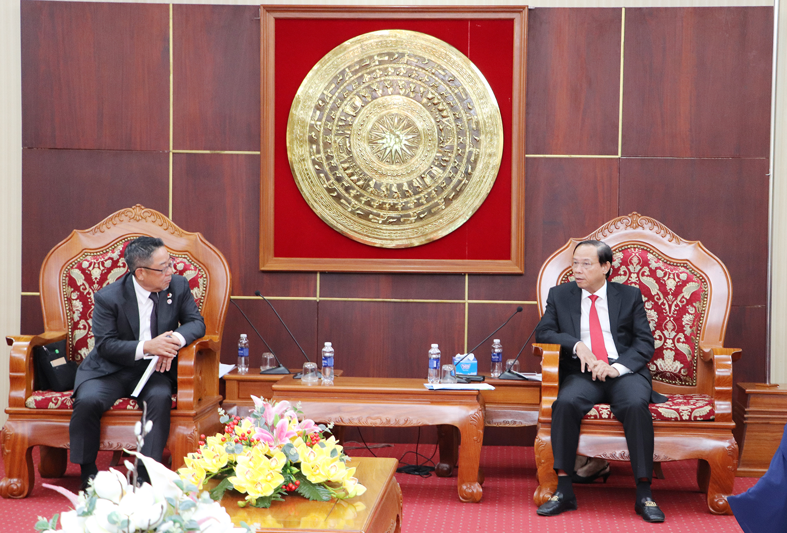 | Chủ tịch UBND tỉnh Nguyễn Văn Thọ chủ trì buổi tiếp đoàn. |