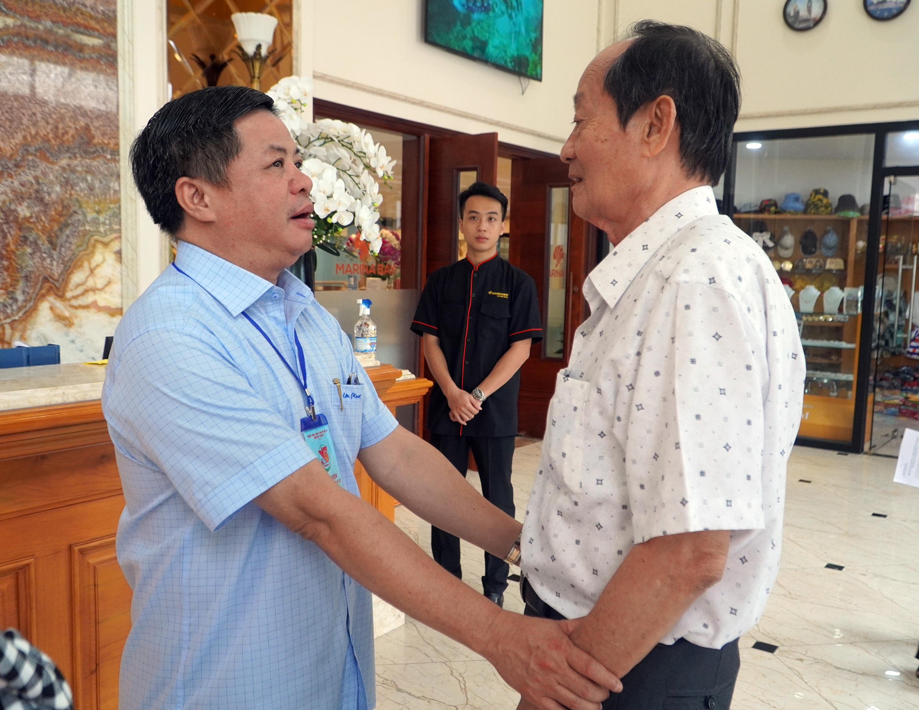 Các sở, ngành của tỉnh và huyện Côn Đảo đã bố trí phương tiện đón ngay từ sân bay Cỏ Ống, bảo đảm sức khỏe cho các cụ và thân nhân khi di chuyển về nơi lưu trú - Marina Bay Côn Đảo Hotel.