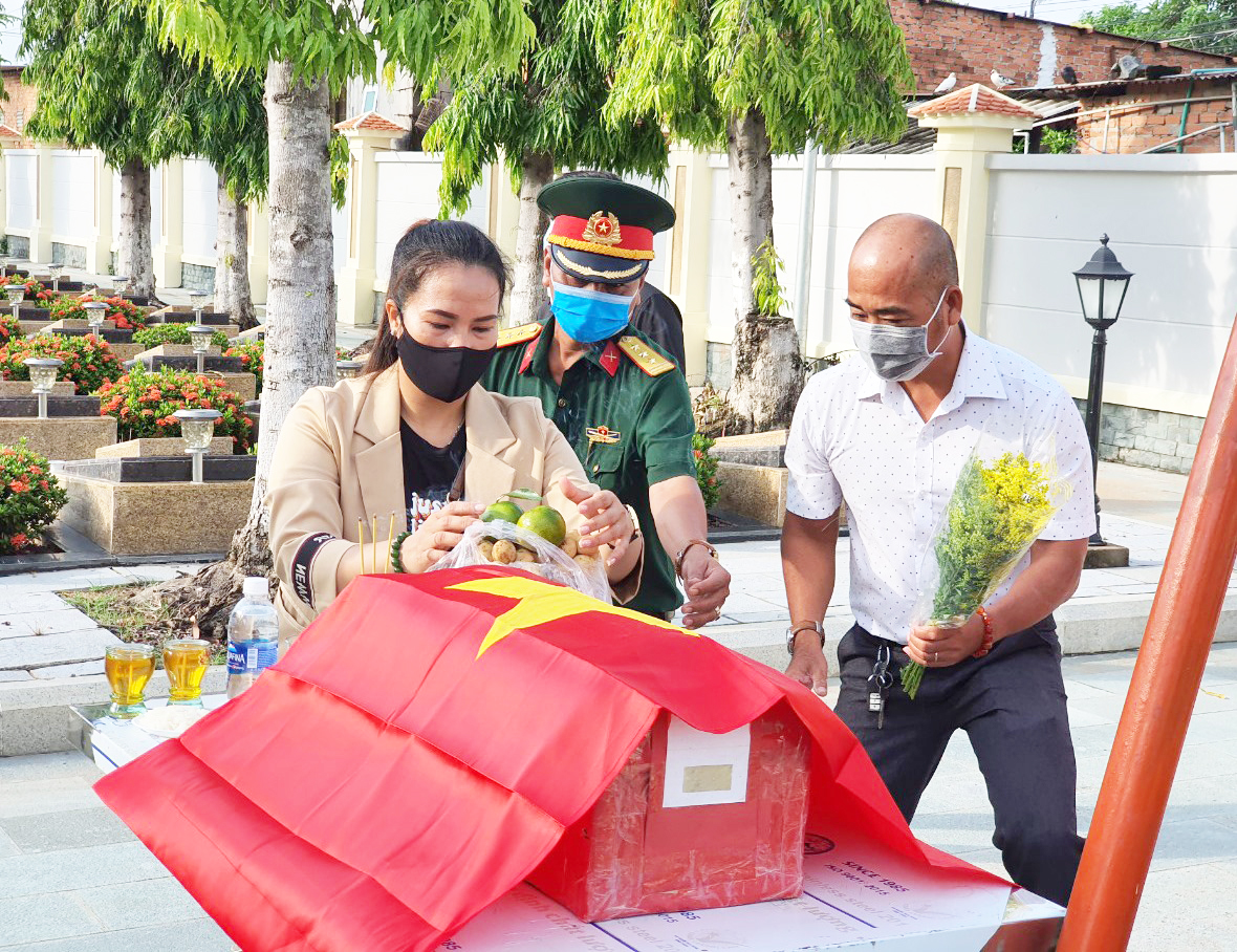| LLVT tỉnh và thân nhân tổ chức an táng liệt sĩ Đỗ Văn Á (SN 1948 tại xã Mỹ Hiệp, huyện Cao Lãnh, tỉnh Đồng Tháp) về an táng tại Nghĩa trang Liệt sĩ tỉnh, tháng 7/2021. |