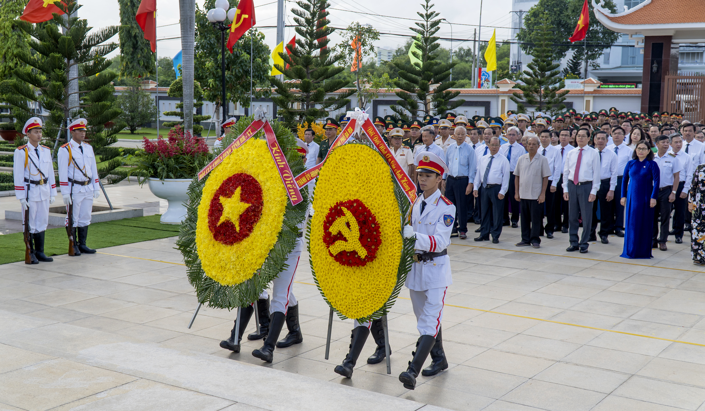 Tiếp đó, tại Đài tưởng niệm các Anh hùng Liệt sĩ Nghĩa trang Liệt sĩ tỉnh, trong không khí trang nghiêm, thành kính và biết ơn vô hạn, các đại biểu đã đặt vòng hoa với dòng chữ “Đời đời ghi nhớ công ơn của các Anh hùng Liệt sĩ”; dành một phút mặc niệm và dâng hương tưởng nhớ các anh hùng liệt sĩ - những người con ưu tú của dân tộc đã anh dũng hy sinh vì sự nghiệp đấu tranh giải phóng dân tộc và thống nhất đất nước.