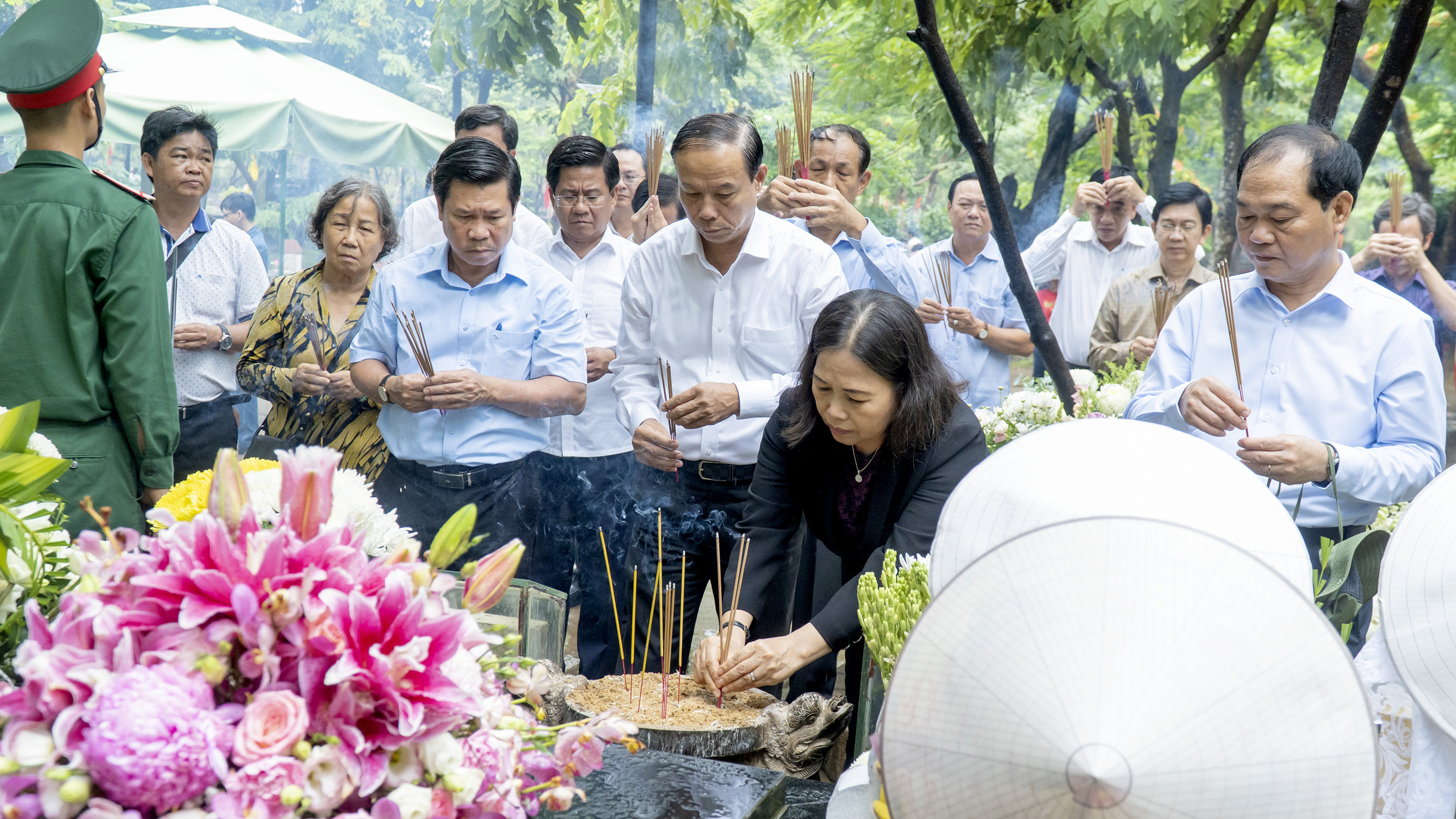 | Lãnh đạo Tỉnh ủy, HĐND, UBND, UBMTTQ Việt Nam tỉnh dâng hương tưởng nhớ các Anh hùng liệt sĩ và đồng bào yêu nước tại nghĩa trang Hàng Keo. |