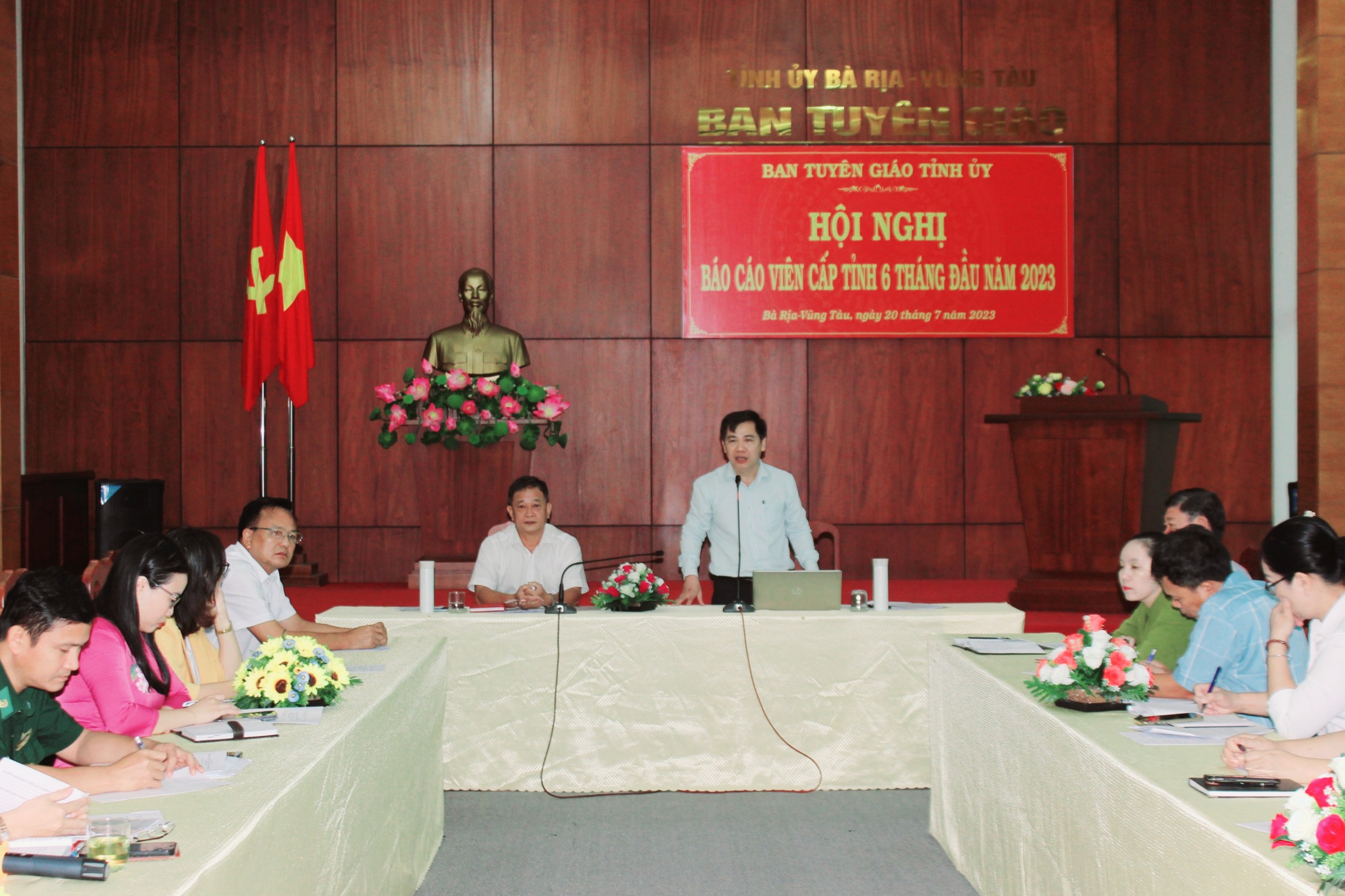 Ban Tuyên giáo Tỉnh ủy đã tổ chức các hội nghị của tỉnh, nối cầu hội nghị trực tuyến và tham dự hội nghị do Ban Tuyên giáo Trung ương tổ chức; tổ chức 1 đợt nghiên cứu, tìm hiểu thực tế cho đội ngũ báo cáo viên cấp tỉnh tại Công ty TNHH Hóa dầu Long Sơn và Đồn Biên phòng Long Sơn; 1 lớp tập huấn kỹ năng nghiệp vụ báo cáo viên, tuyên truyền viên cho 150 báo cáo viên và tuyên truyền viên cơ sở.
