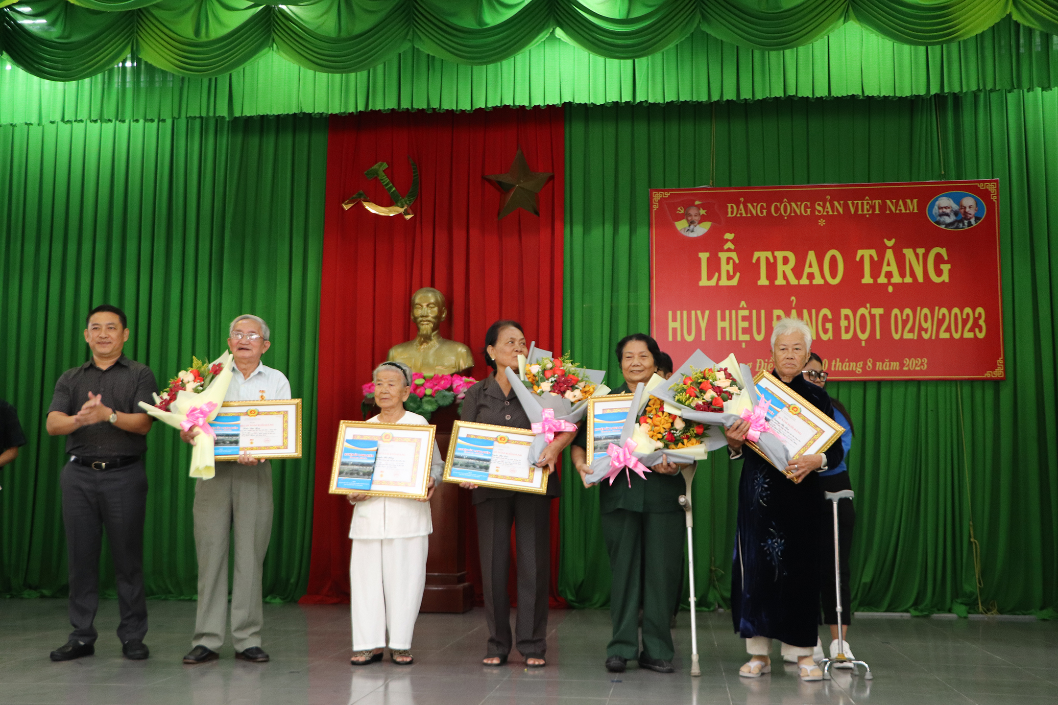 5 đảng viên được trao Huy hiệu 50 năm tuổi Đảng, gồm: ông Trần Văn Đấu (chi bộ KP.Long An, Đảng bộ TT.Long Điền), bà Trần Thị Cấn (chi bộ KP.Long Tân, Đảng bộ TT.Long Điền), ông Lê Văn Minh (chi bộ KP.Hải Bình, Đảng bộ TT.Long Hải), ông Lê Thanh Hùng (chi bộ ấp Phước Hiệp, Đảng bộ xã Phước Tỉnh) và bà Võ Thị Xinh (chi bộ ấp Phước Hương, Đảng bộ xã Phước Tỉnh).