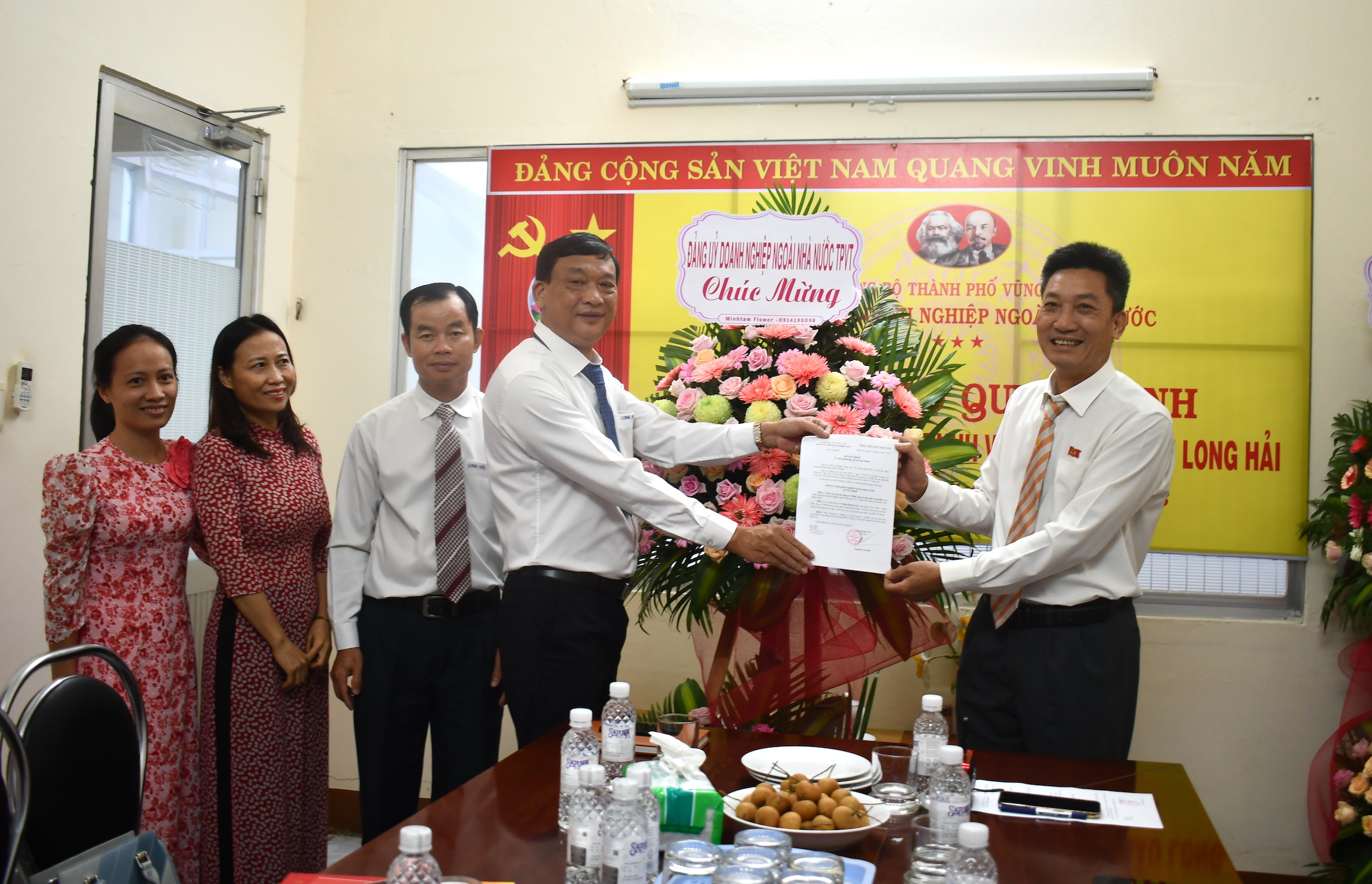 Chiều 31/8, Đảng ủy Doanh nghiệp ngoài Nhà nước TP.Vũng Tàu tổ chức lễ công bố Quyết định thành lập Chi bộ Công ty TNHH Vận tải Xăng dầu Long Hải (phường 7, TP.Vũng Tàu).