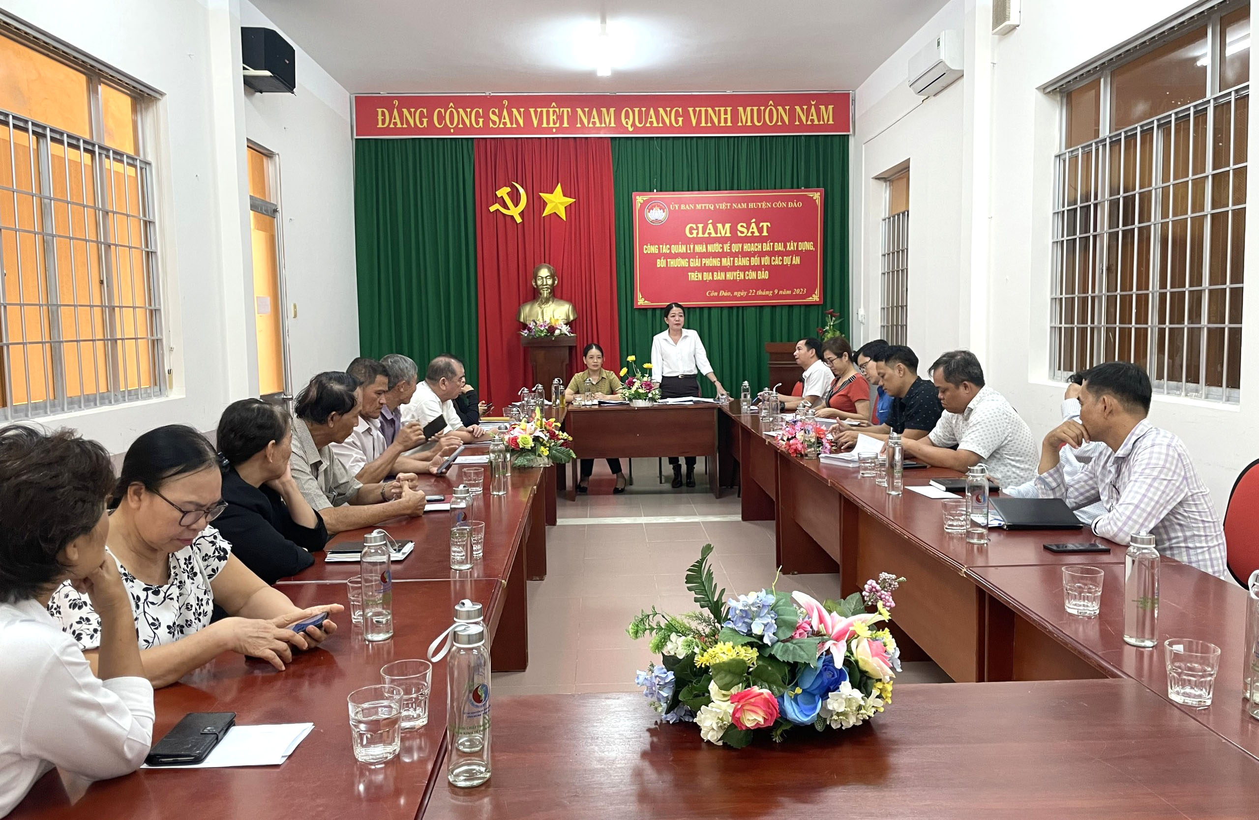 Chiều 22/9, Đoàn công tác của UBMTTQ Việt Nam huyện Côn Đảo tổ chức giám sát công tác quản lý Nhà nước về quy hoạch, đất đai, xây dựng và bồi thường giải phóng mặt bằng đối với một số dự án triển khai trên địa bàn.