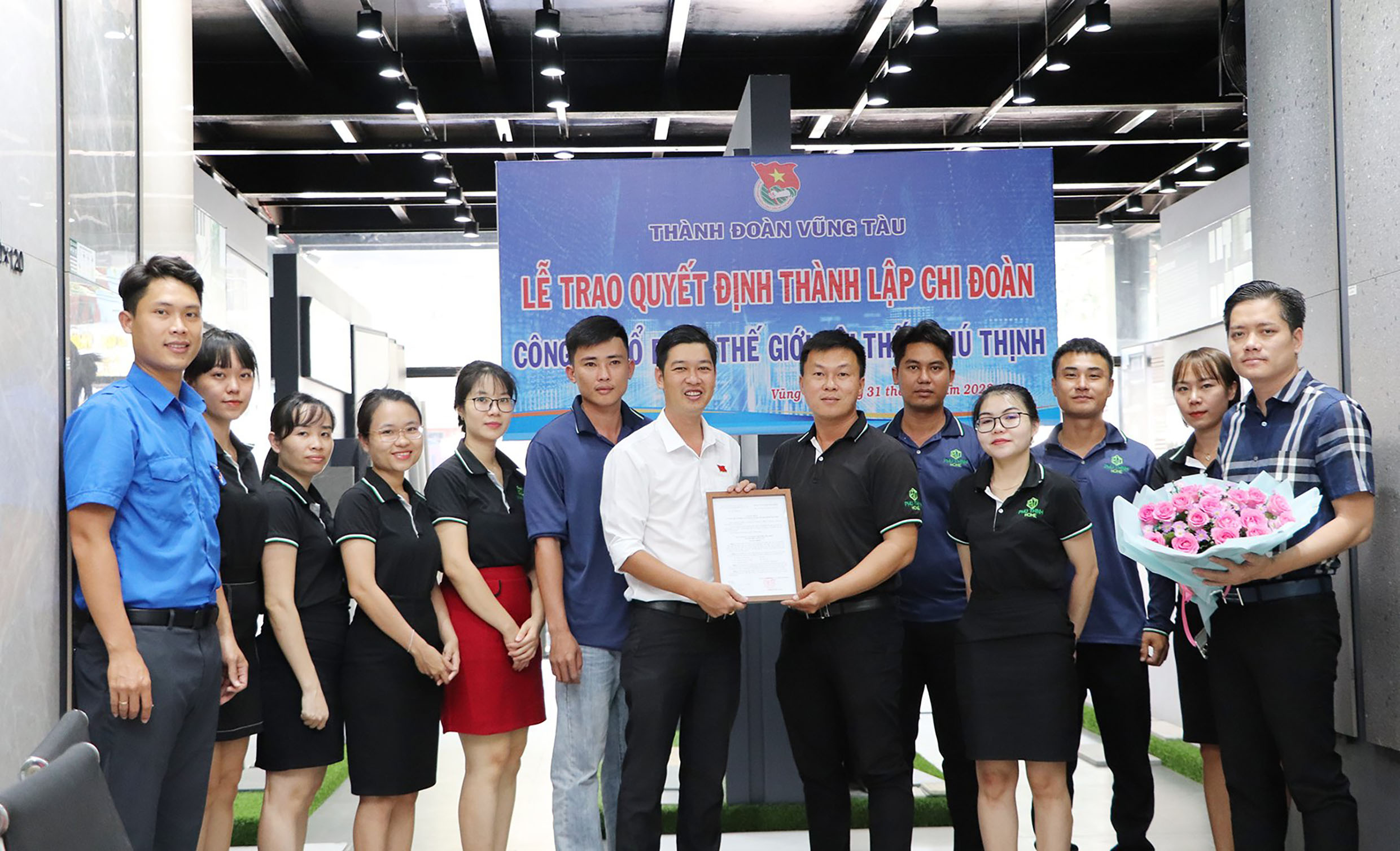 | Anh Nguyễn Nhật Minh, Bí thư Thành Đoàn Vũng Tàu trao Quyết định thành lập Chi đoàn cơ sở Công ty CP Thế giới nội thất Phú Thịnh tháng 3/2023. |
