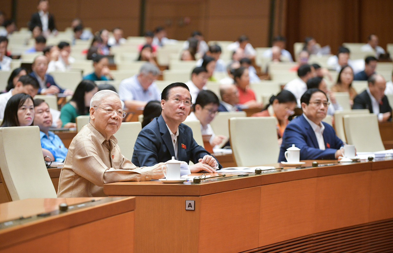 | Tổng Bí thư Ban chấp hành Trung ương Đảng Nguyễn Phú Trọng, Chủ tịch Nước Võ Văn Thưởng và Thủ tướng Chính phủ Phạm Minh Chính tham dự phiên họp |