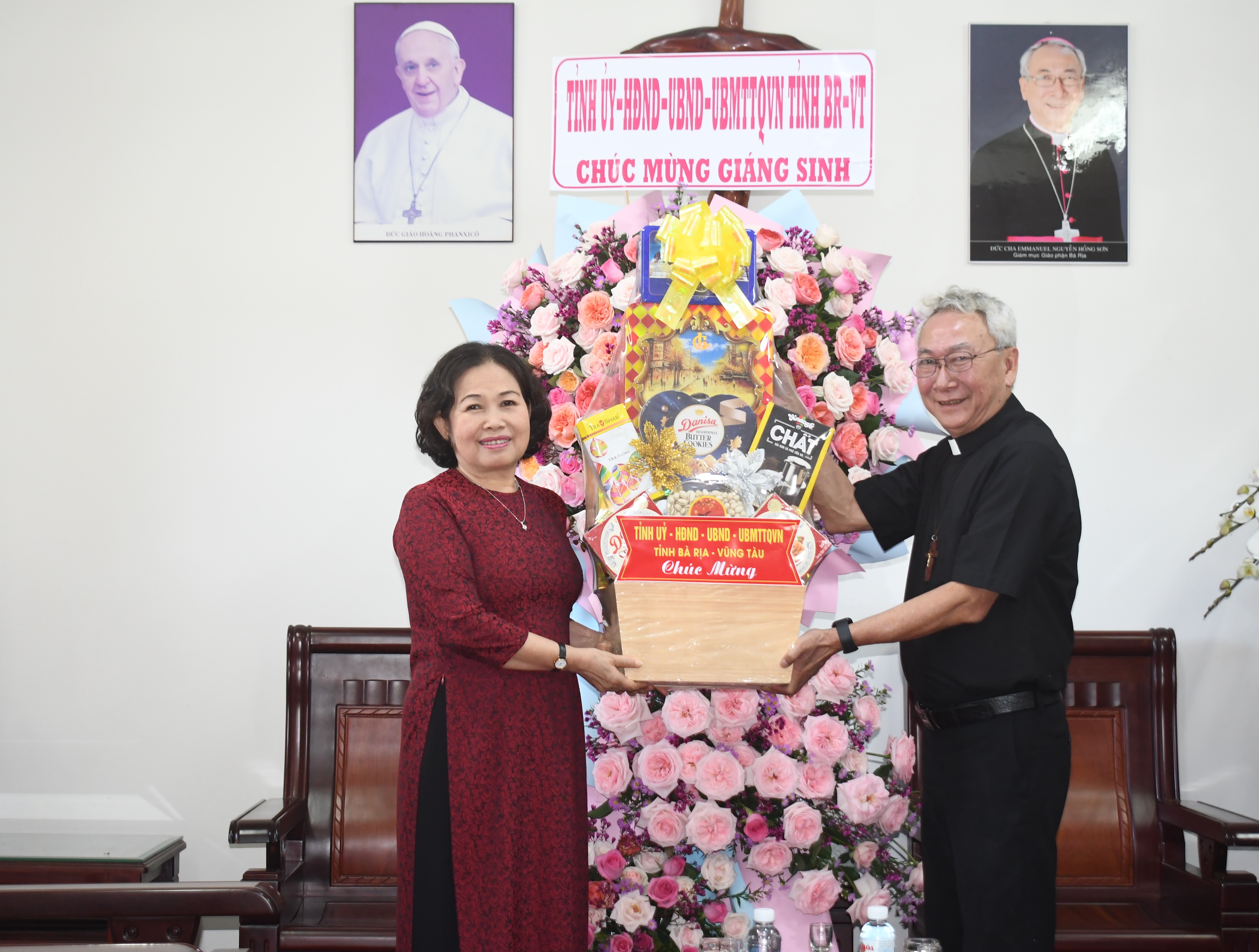 Sáng 19/12, Đoàn của Tỉnh ủy, HĐND, UBND, UBMTTQ Việt Nam tỉnh do bà Nguyễn Thị Yến, Phó Bí thư Thường trực Tỉnh ủy, Trưởng Đoàn ĐBQH tỉnh làm Trưởng Đoàn đã đến thăm, tặng quà, chúc mừng Giám mục Emmanuel Nguyễn Hồng Sơn, Giám mục Giáo phận Bà Rịa cùng các linh mục, tu sĩ thuộc Giáo phận Bà Rịa nhân dịp Giáng sinh năm 2023.