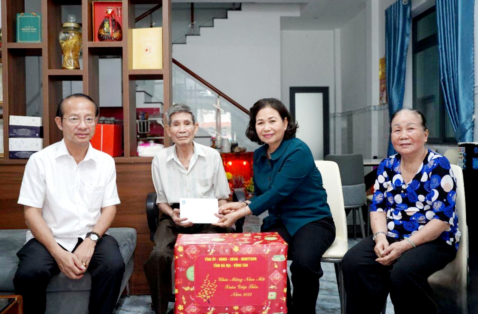 | Bà Nguyễn Thị Yến, Phó Bí thư Thường trực Tỉnh ủy, Trưởng Đoàn ĐBQH tỉnh tặng quà gia đình ông Nguyễn Xuân Viên (cựu tù chính trị Côn Đảo). |