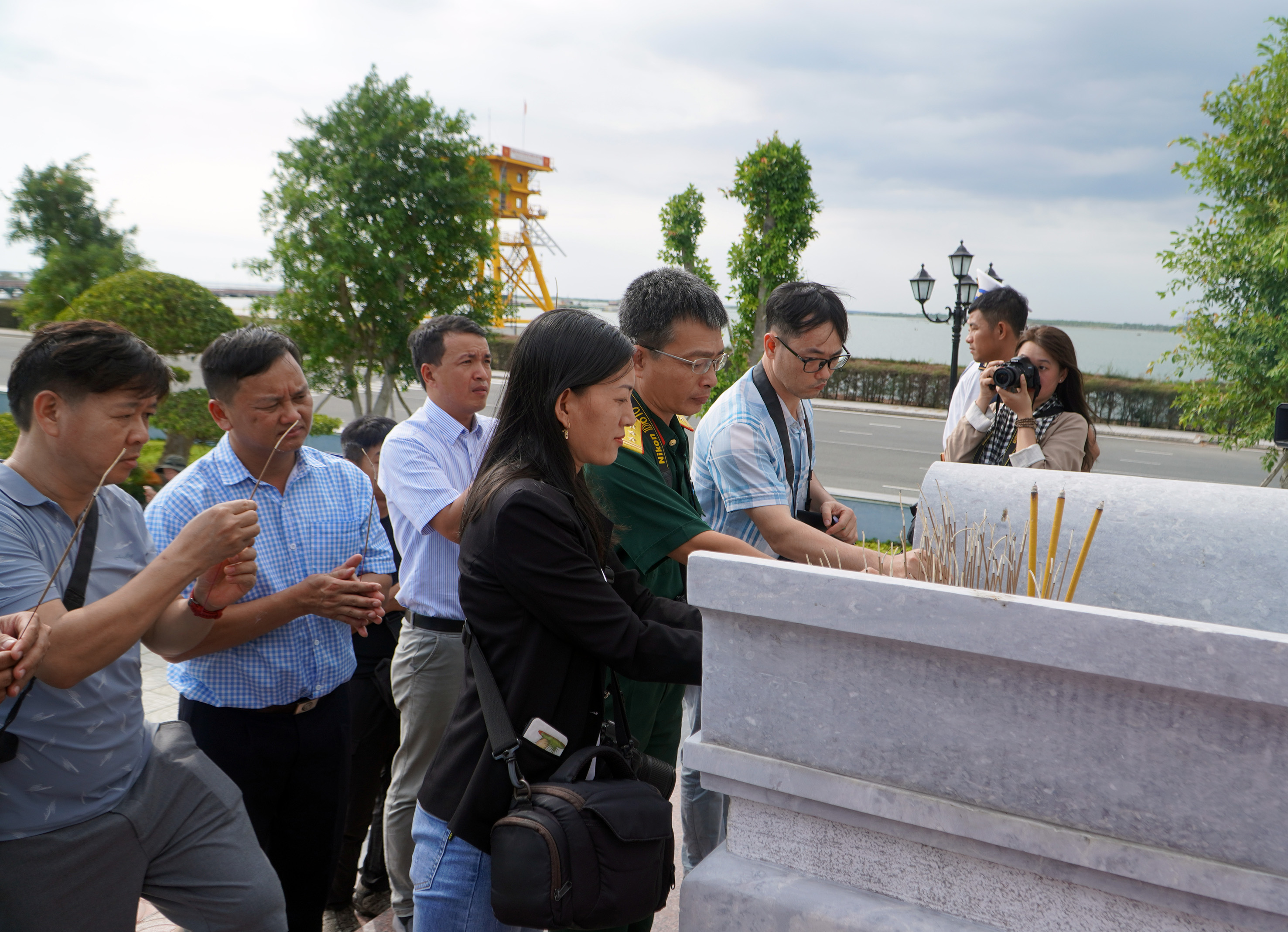 | Các phóng viên báo, đài thắp hương trước chuyến đi công tác chúc tết các nhà giàn DK1 và huyện Côn Đảo nhân dịp Tết Giáp Thìn 2024 |