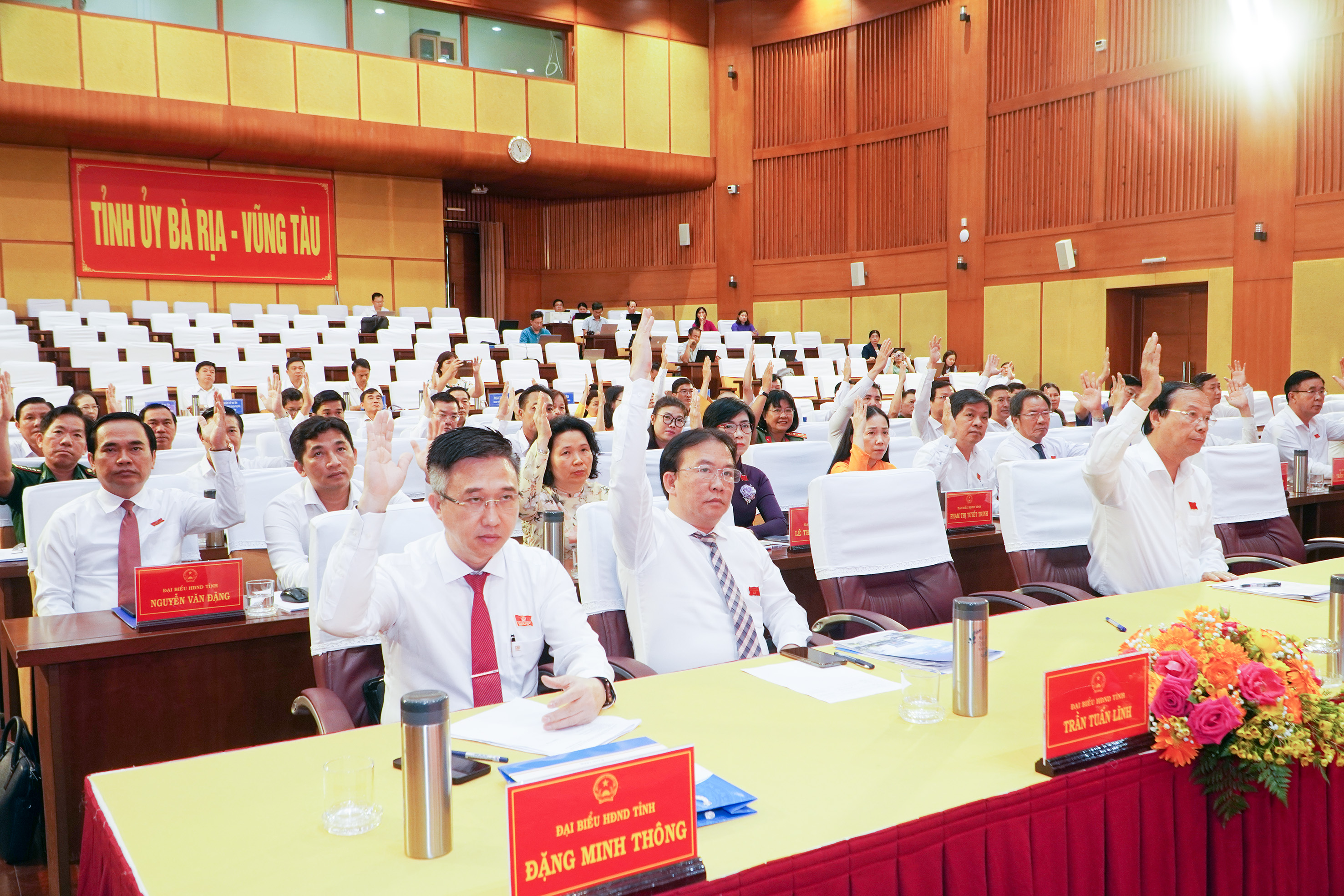 | Các đại biểu HĐND tỉnh biểu quyết thông qua nghị quyết. |