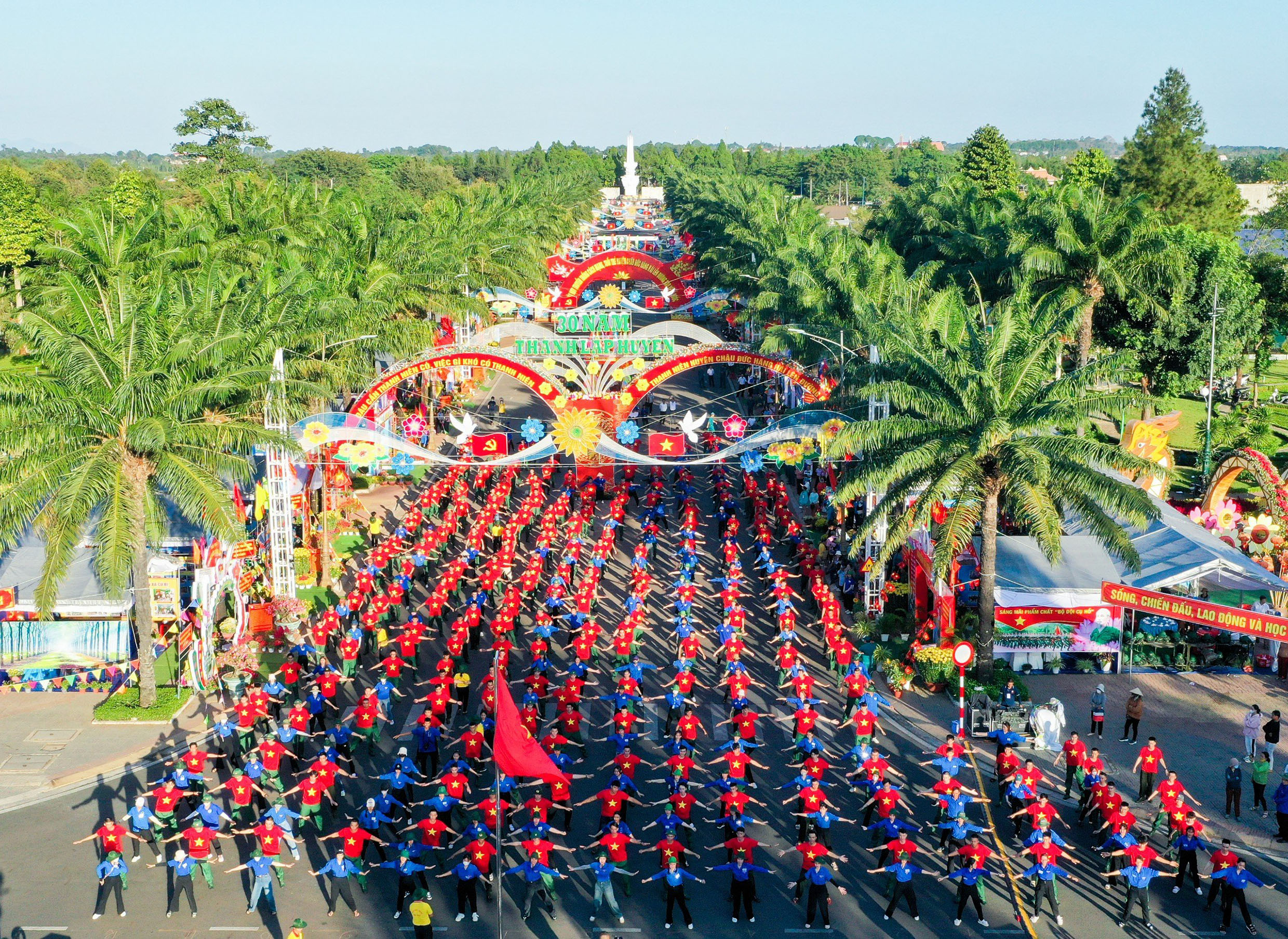 | Nhiều hoạt động văn hóa, văn nghệ sẽ được diễn ra tại lễ kỷ niệm 30 năm ngày thành lập huyện. Trong ảnh: Đồng diễn dân vũ trong ngày hội tòng quân năm 2024 ở huyện Châu Đức. |