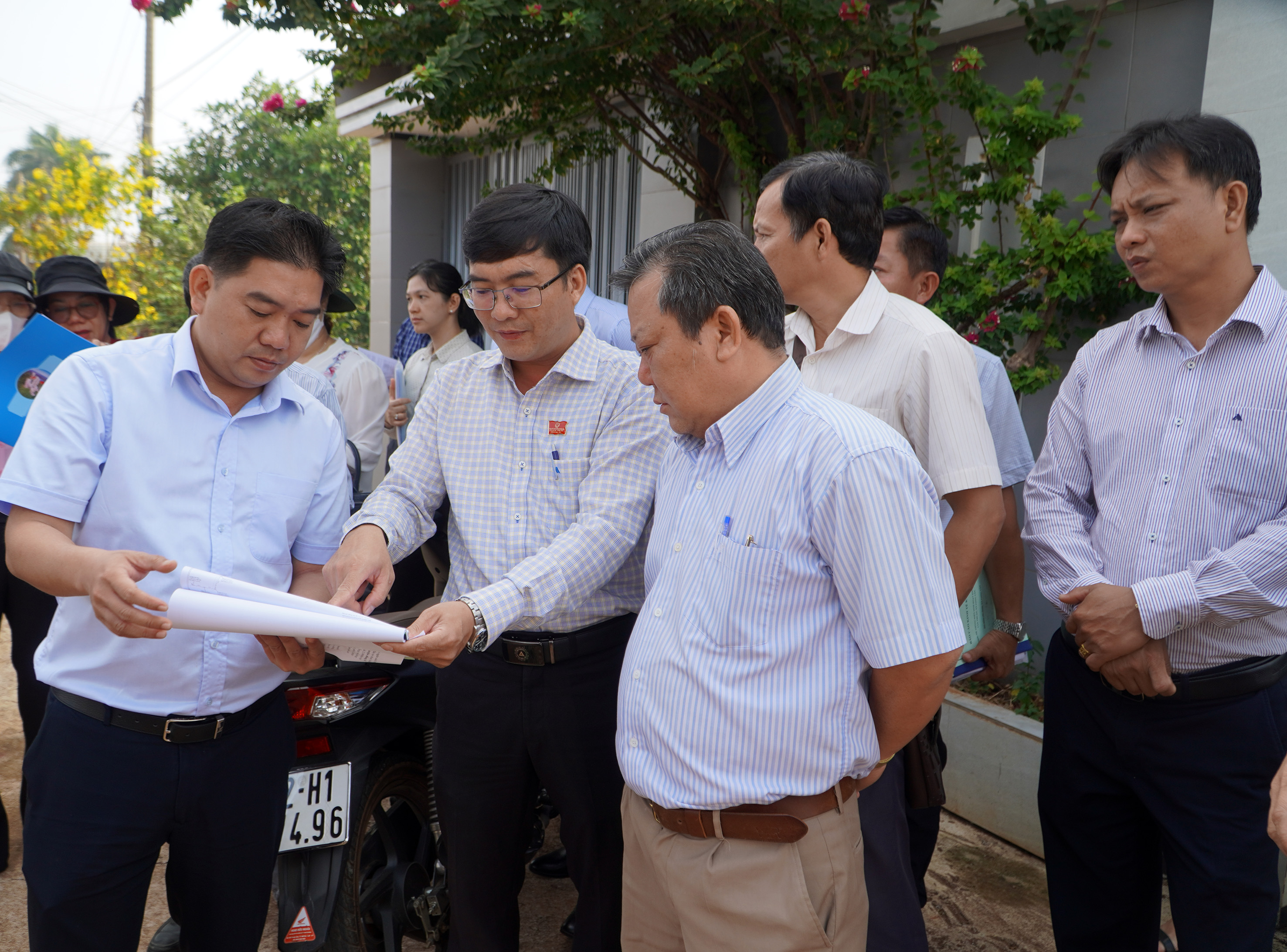 | Đoàn giám sát của HĐND tỉnh khảo sát đường điện hạ thế tại khu vực ấp Tân Thuận, xã Long Tân. |