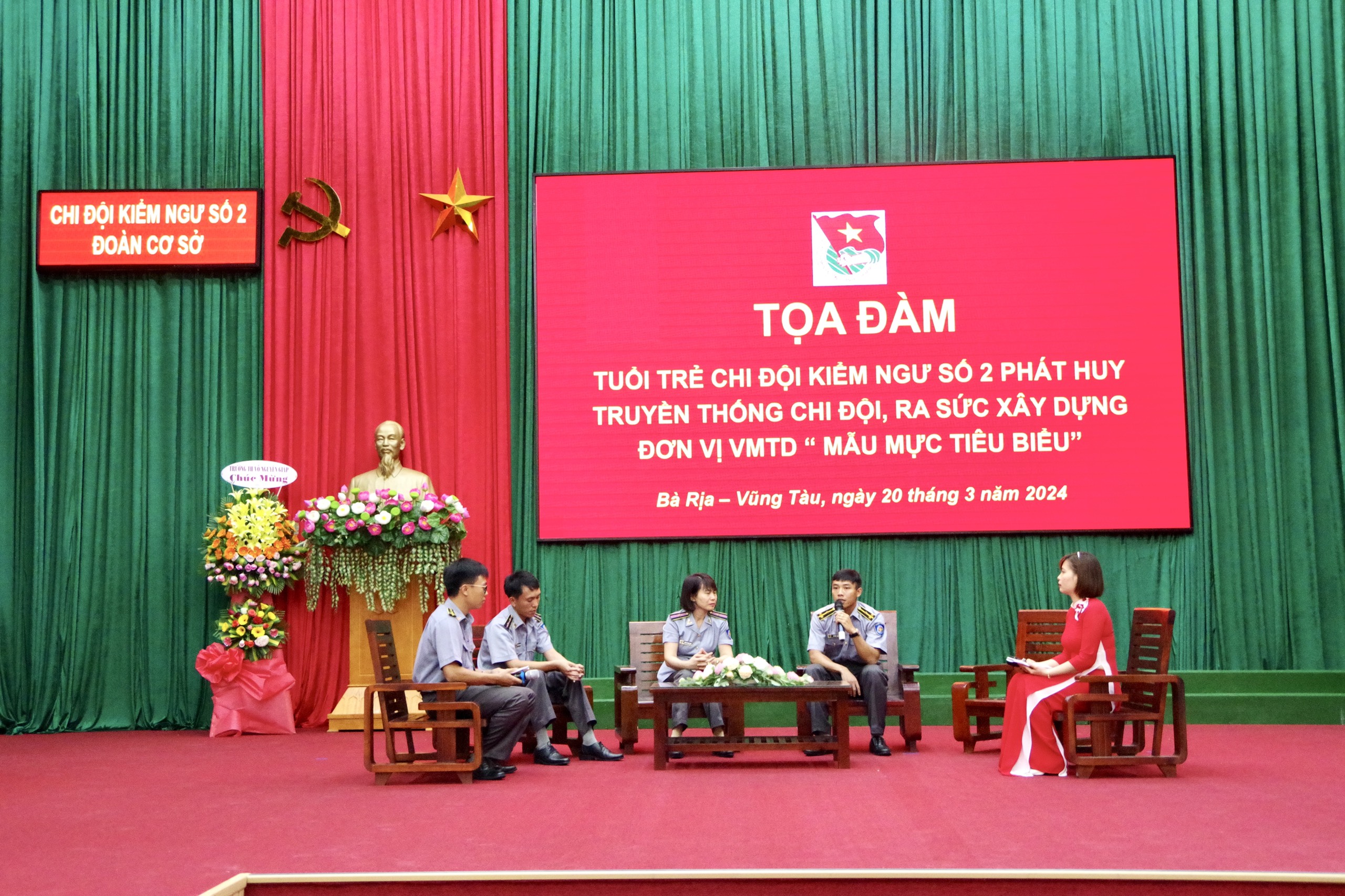 Tối 20/3, Đoàn cơ sở Chi đội Kiểm ngư số 2 tổ chức tọa đàm với chủ đề “Tuổi trẻ Chi đội Kiểm ngư số 2 phát huy truyền thống Chi đội, ra sức xây dựng đơn vị vững mạnh toàn diện, mẫu mực, tiêu biểu”.